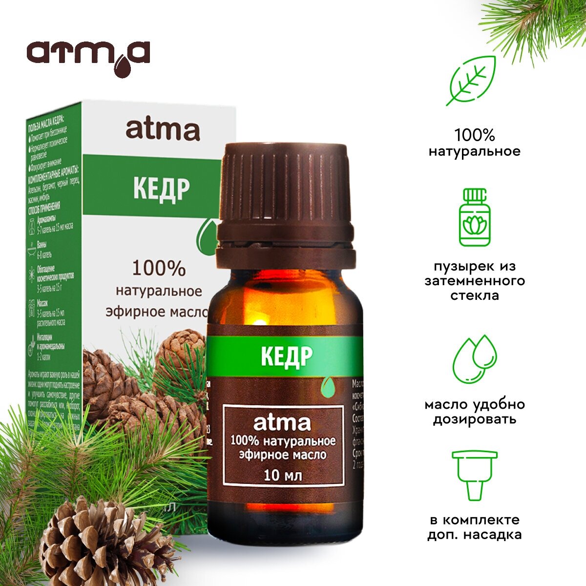 Atma Кедр, 10 мл - эфирное масло, 100% натуральное