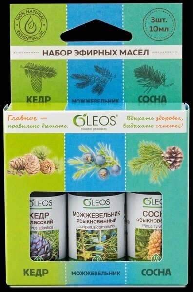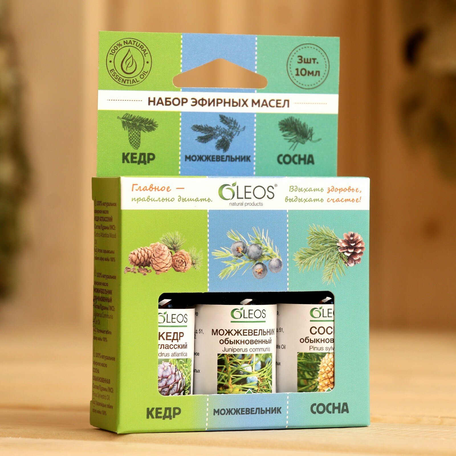 OLEOS набор эфирных масел Кедр, Можжевельник, Сосна, 10 мл х 3 шт., 1 шт.