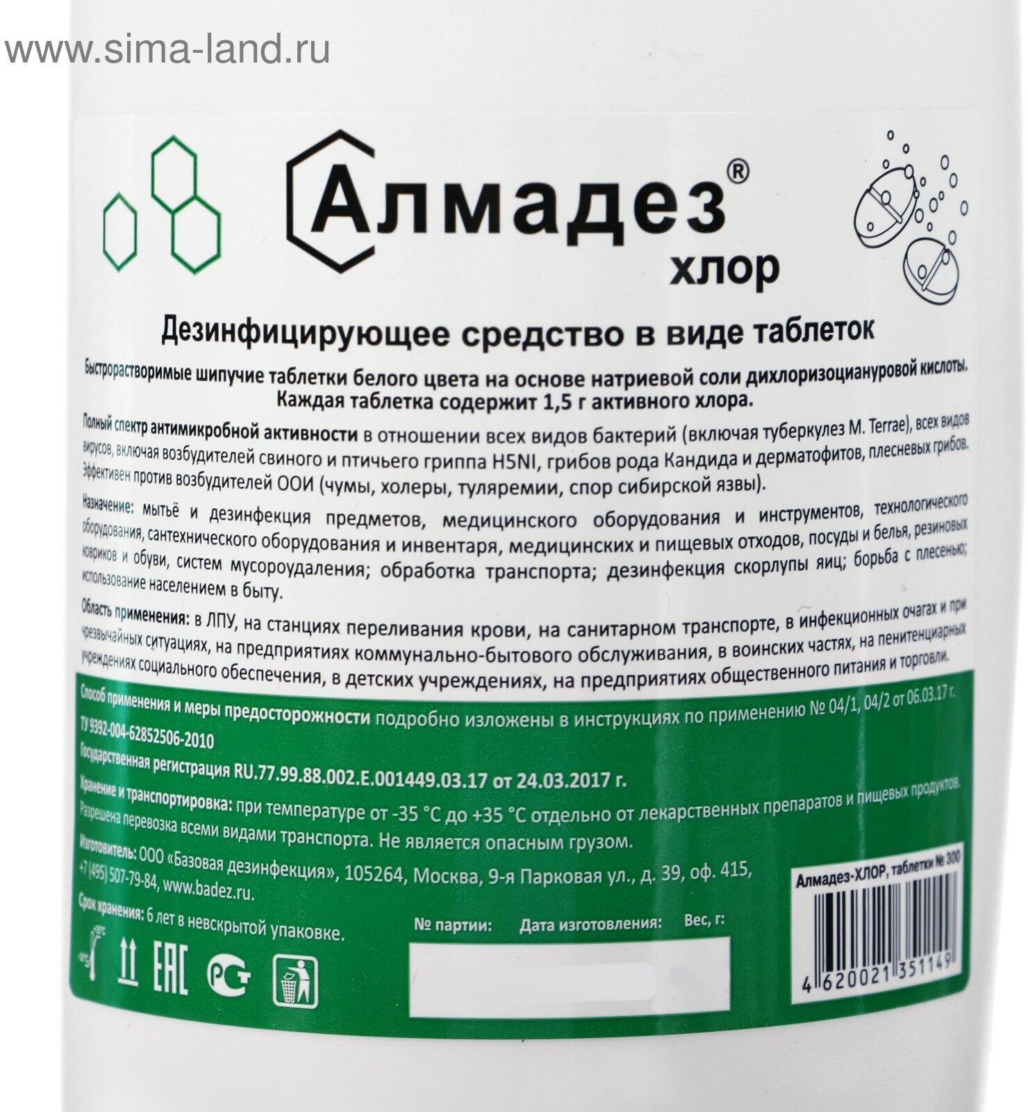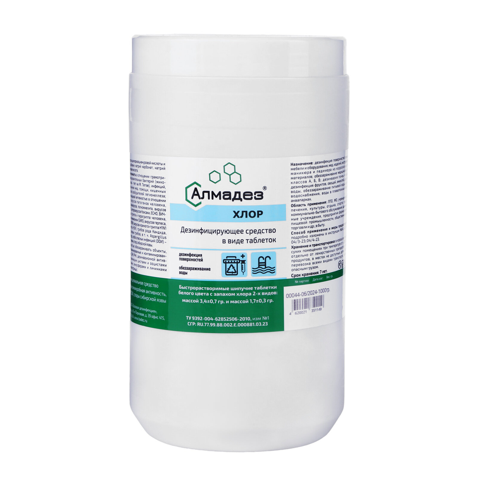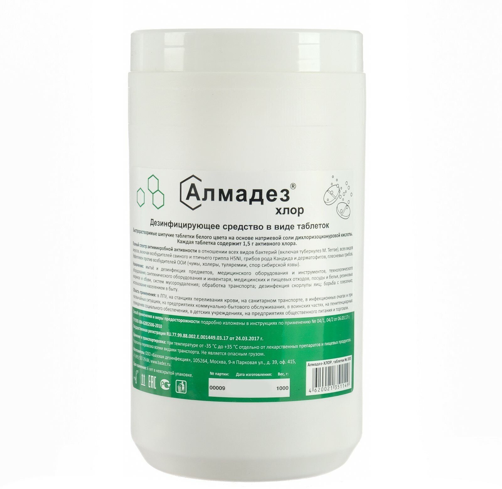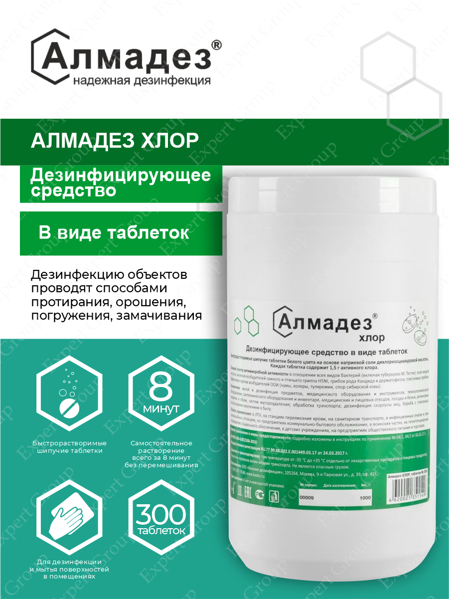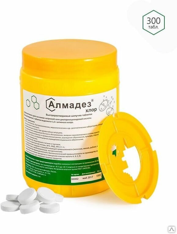 Дезинфицирующее средство "Алмадез-хлор", 300 таблеток, 1кг