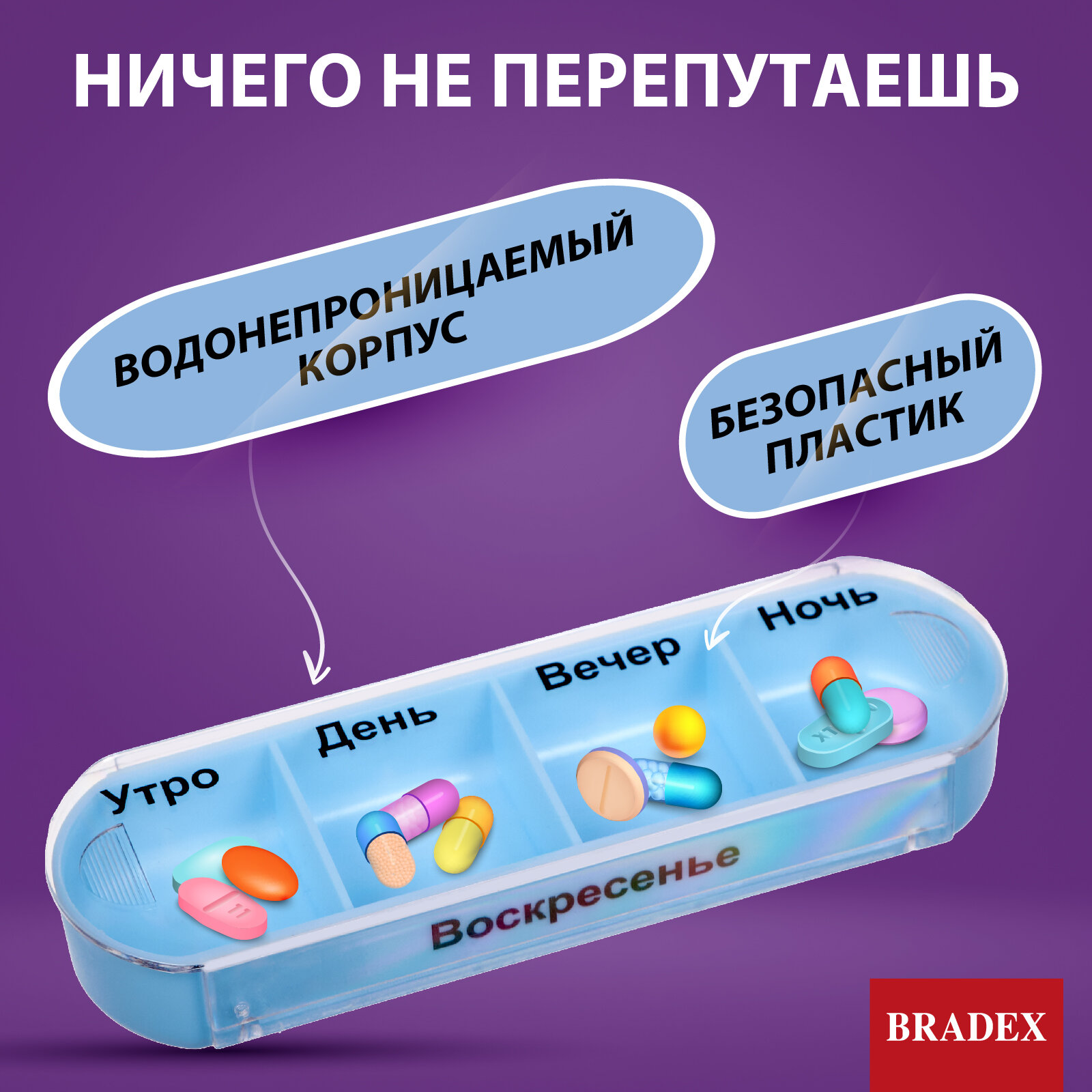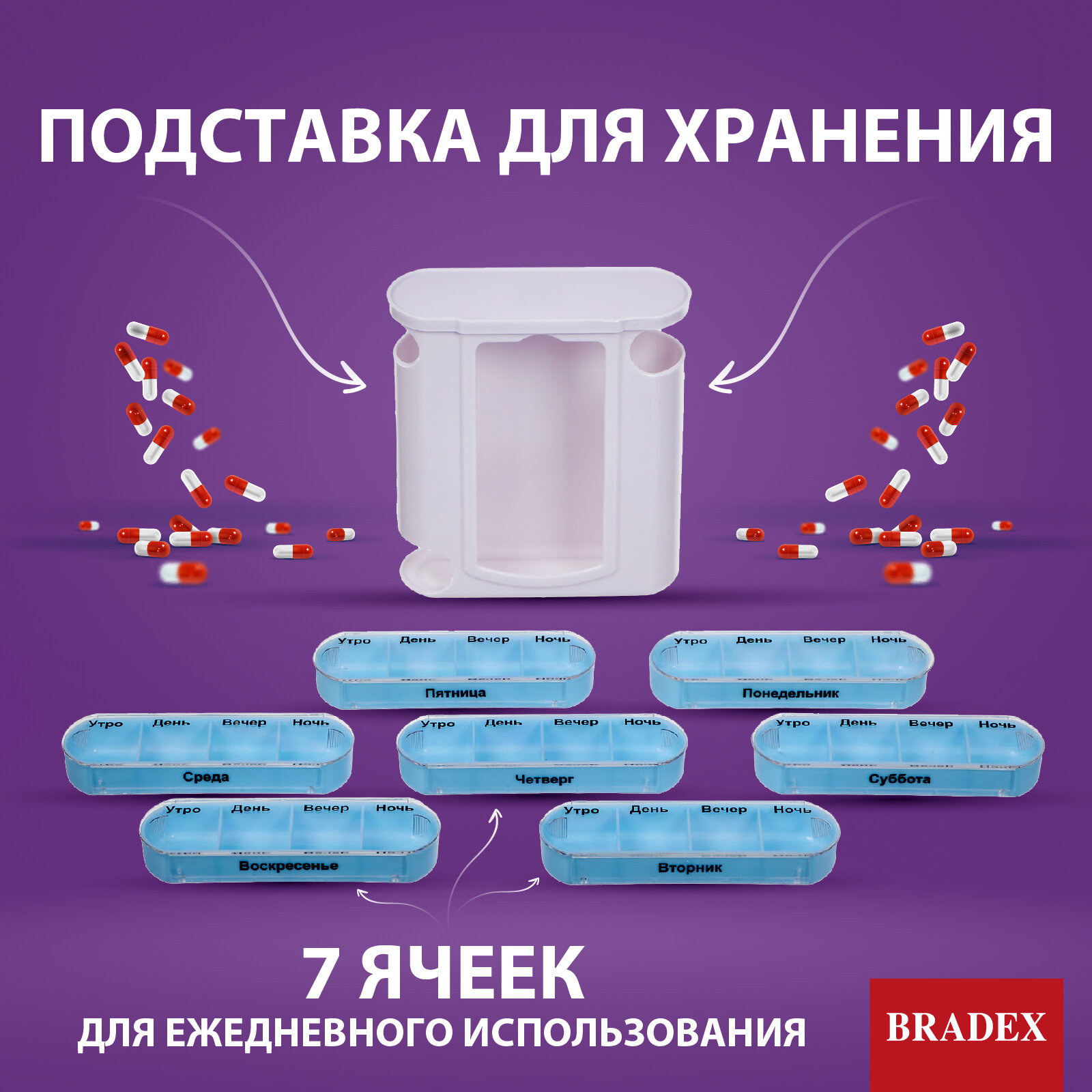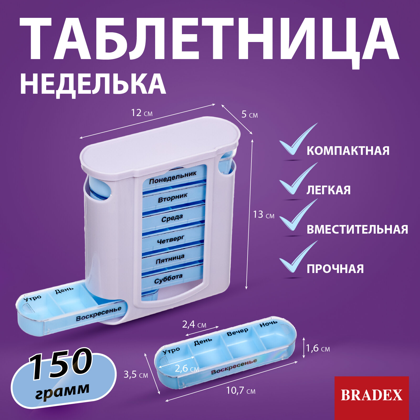 Таблетница на неделю Bradex, контейнер для таблеток Неделька, органайзер для хранения лекарств на день, утро, вечер, 7 дней, аптечка дорожная
