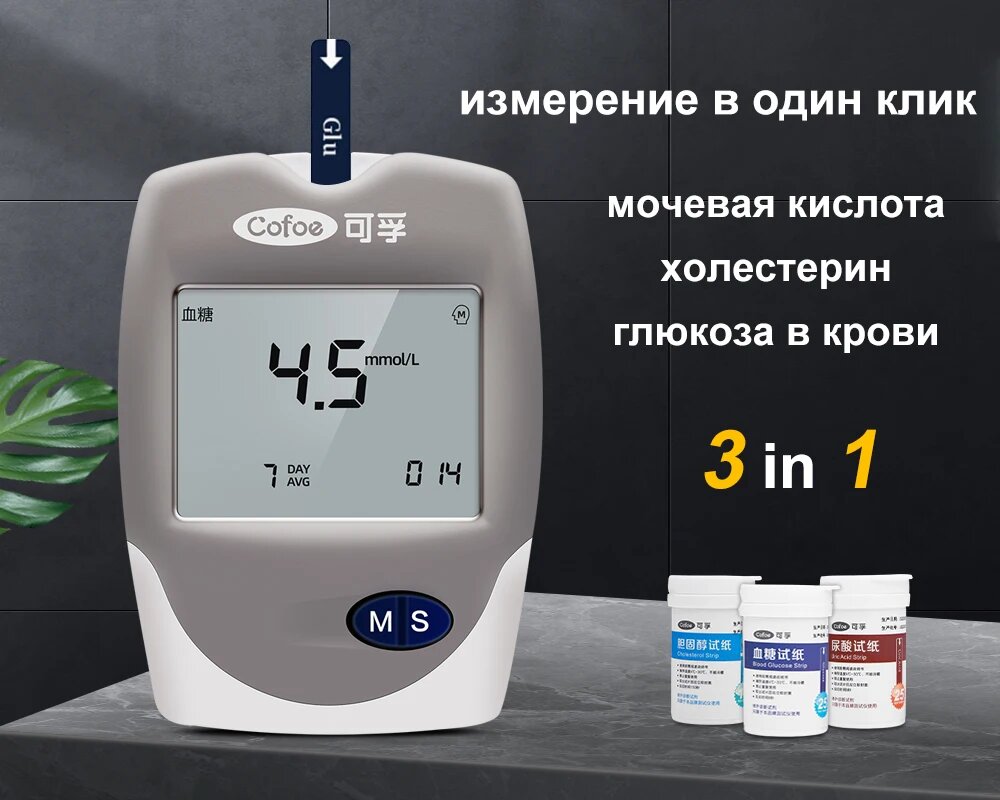 Cofoe 3 в 1 Глюкометр для Диабета, 1meter 25Uric Acid интересное:
