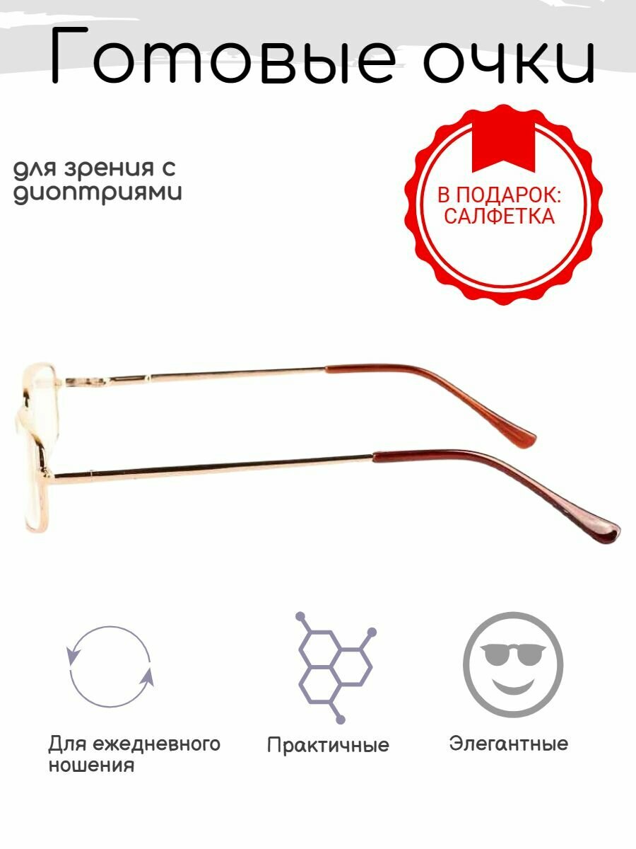 Готовые очки для зрения с диоптриями -3.50 футляр, прямоугольные, металлические, мужские
