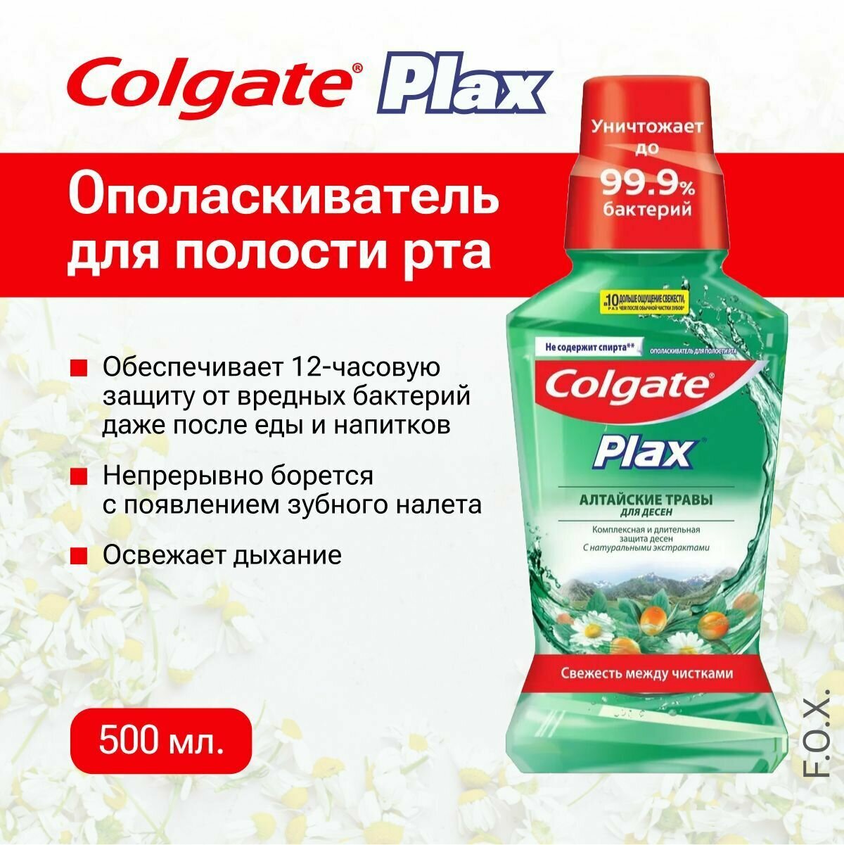 Colgate Plax Алтайские Травы для десен ополаскиватель для полости рта 500 мл ( 3 шт)