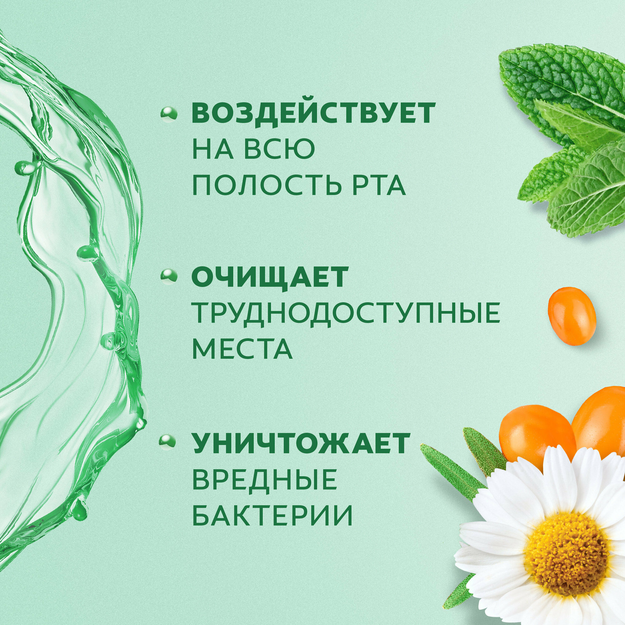 | Дополнительная информация | Имеет освежающий мятный вкус. Уничтожает до 99,9% вредных бактерий - основную причину несвежего дыхания. Образует защитную пленку, которая нейтрализует вредное воздействие бактерий и зубного налета и обеспечивает свежее дыхание 24 часа/7 дней в неделю. Не вызывает ощущения жжения в полости рта. Не содержит спирта. Клинически протестировано стоматологами. |