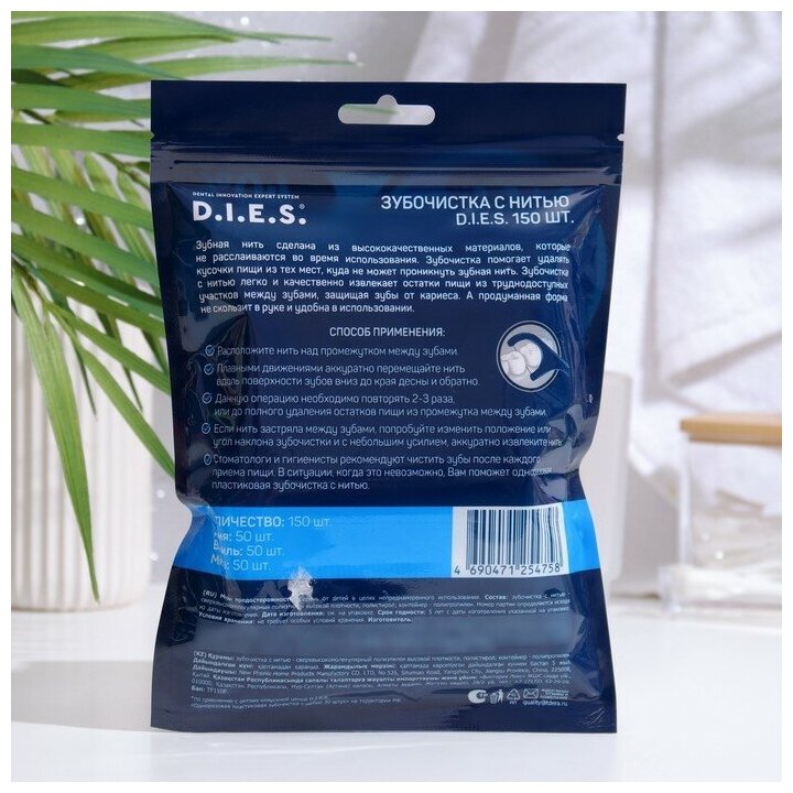 Зубная нить с зубочисткой D.I.E.S. МИКС-1, пластиковые зубочистки с нитью 150 шт.*2 шт