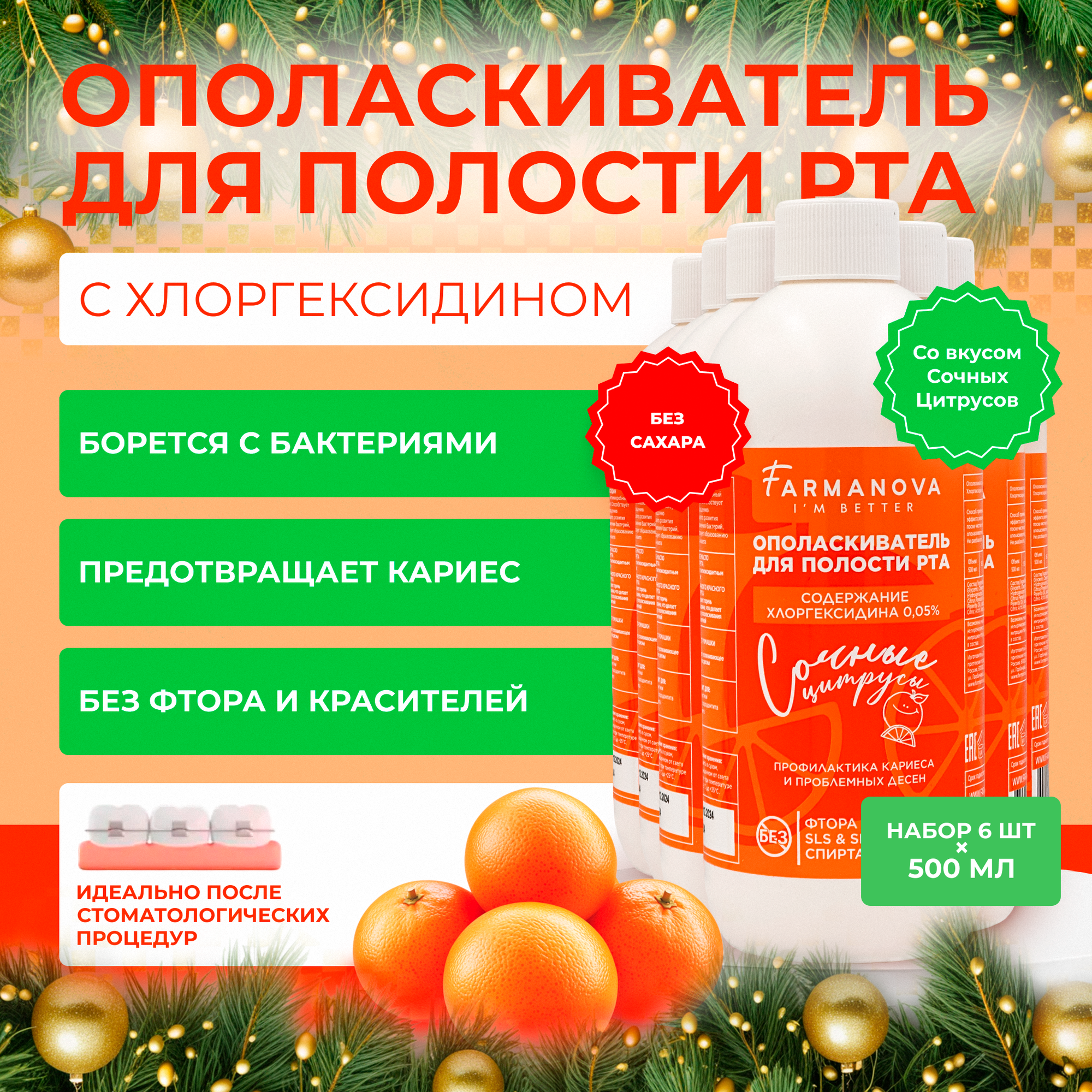 Купить 500 мл х 6 шт. Ополаскиватель для полости рта хлоргексидин 500 мл со вкусом Сочных цитрусов/ Ополаскиватель / Для полости рта