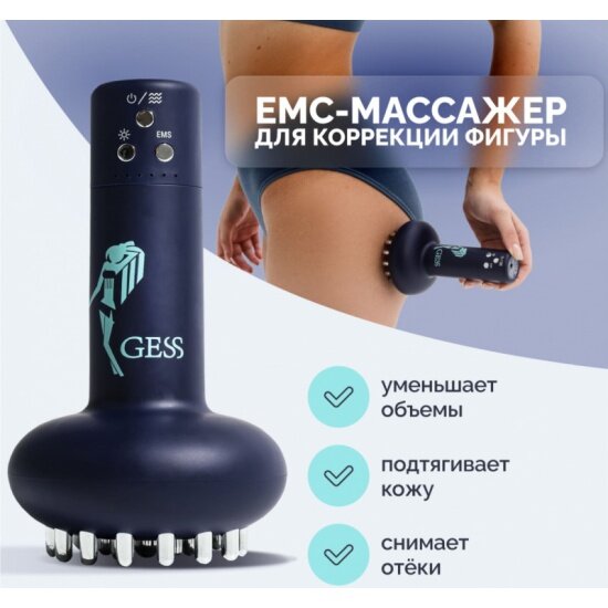 Вибромассажер для тела антицеллюлитный GESS EMIOS , лимфодренажный, моделирующий с EMS, 3 вида воздействия