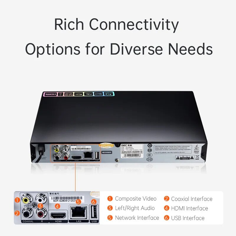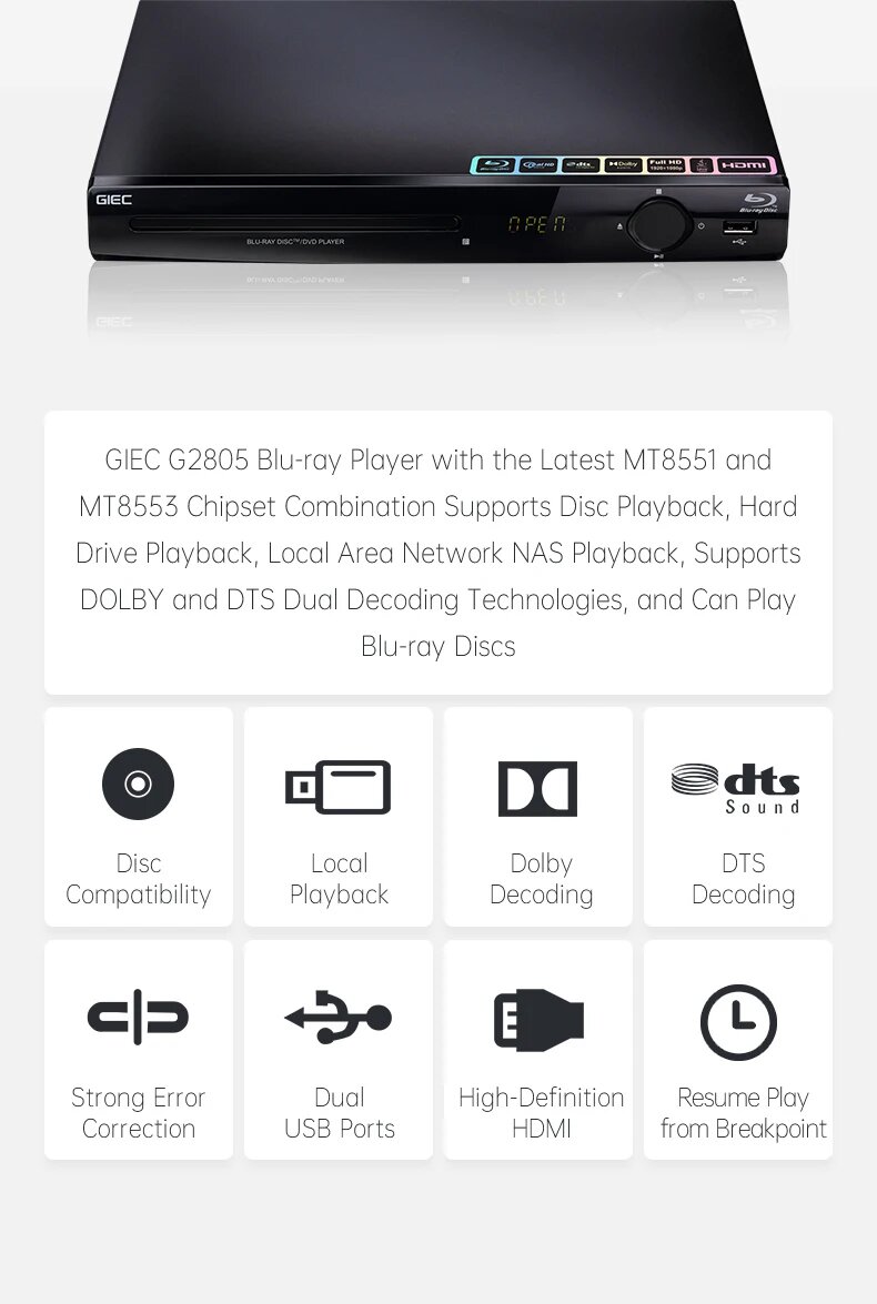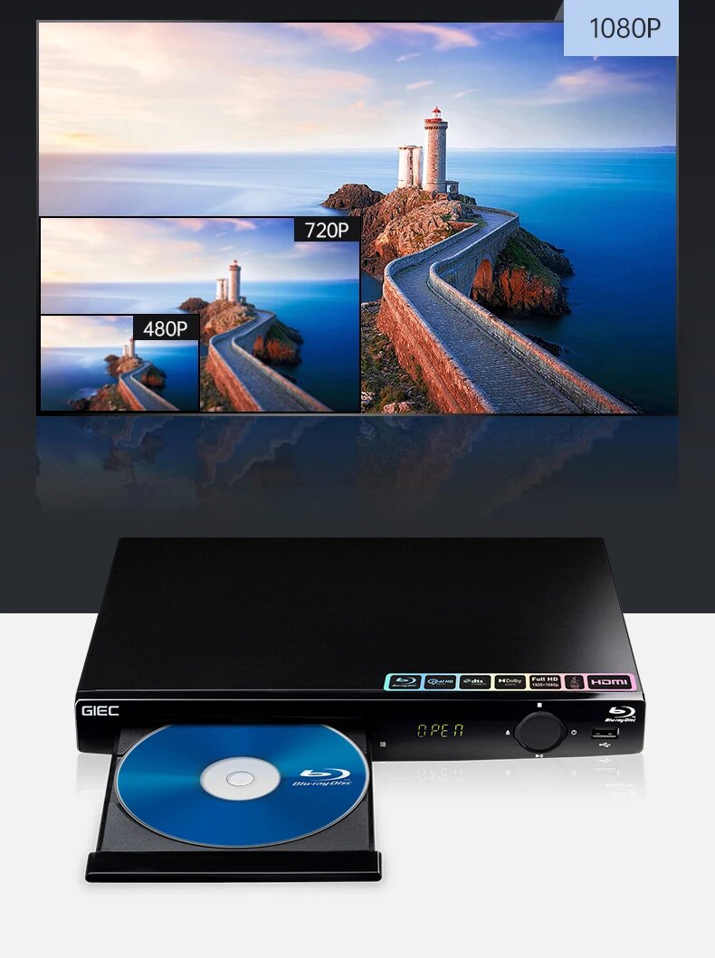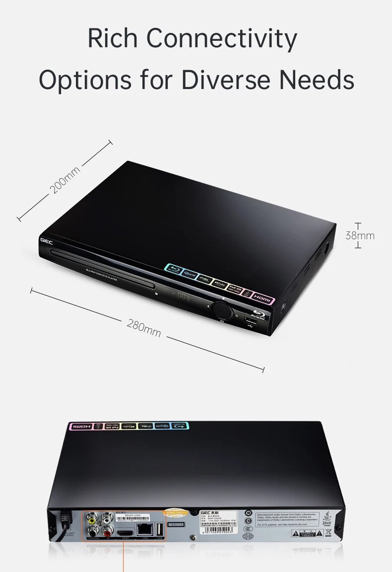 Blu-ray плеер GIEC G2805, DVD/VCD/CD плеер, поддерживает декодирование Dolby DTS, воспроизведение USB, жесткий диск BD25/50