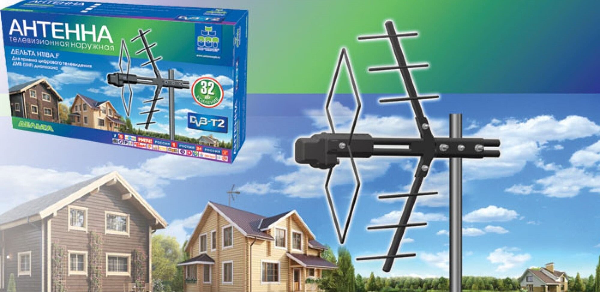 Антенны ТВ Дельта Антенна уличная Дельта Н118АF 5V б/к (активная, DVB-T2, без б/п, 28-32 дБ, коробка)