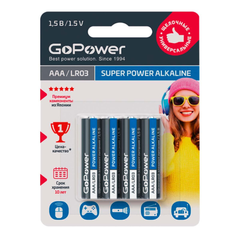 СохранитьБатарейка GoPower LR03 AAA 4шт/бл Alkaline 1.5V (4/48/576) 1893674 00-00015602 интересное: