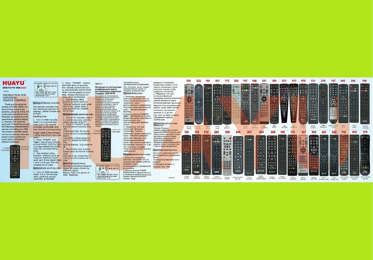 СохранитьПульт ДУ HUAYU DVB-T2 и IPTV, ver.2023 для цифровых приставок, IPTV, ТВ боксов (универсальный ) интересное: