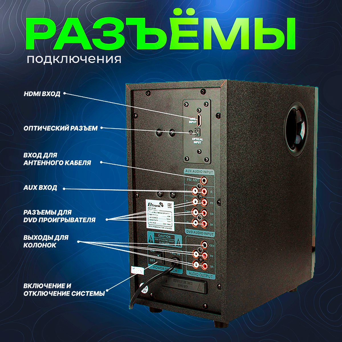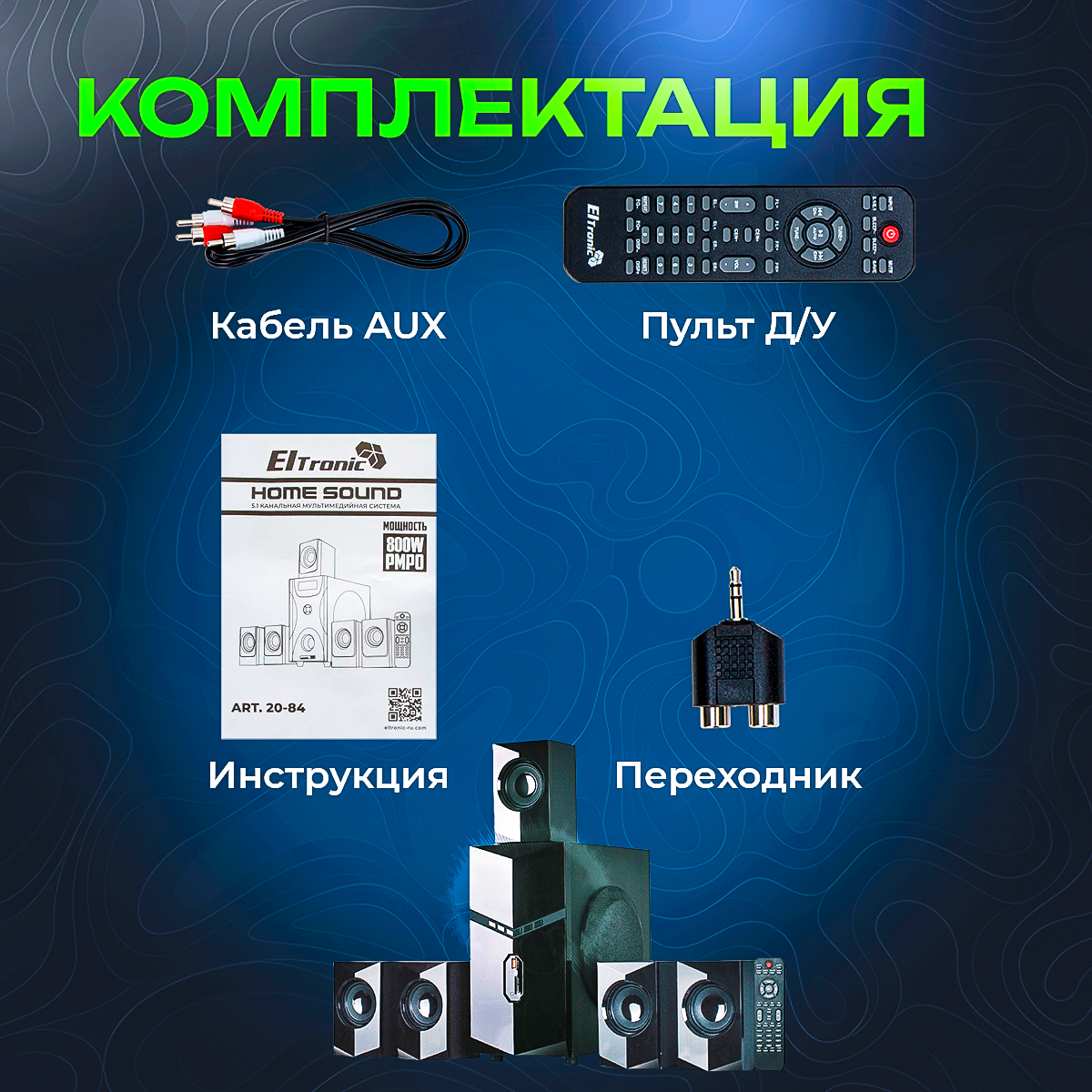 Акустическая система ELTRONIC 5.1 HOME SOUND 20-84, Bluetooth, фазоинверторный тип интересное: