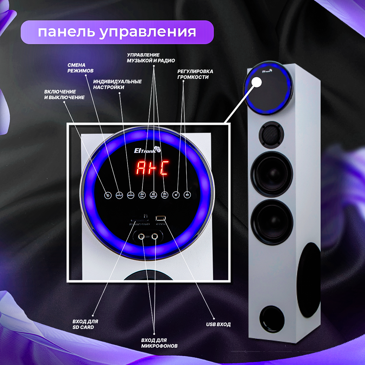 Акустические колонки ELTRONIC Home Sound 30-35 (серебро), 220 В, 6 полос, Bluetooth, FM, 30 Гц - 20 кГц