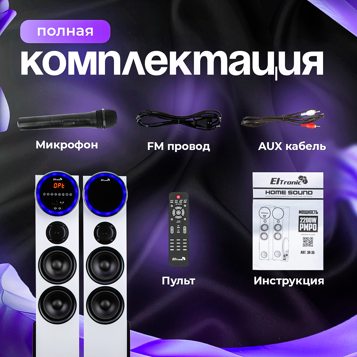 Акустические колонки ELTRONIC Home Sound 30-35 (белый), 220 В, 6 полос, Bluetooth, FM, 30 Гц - 20 кГц интересное: