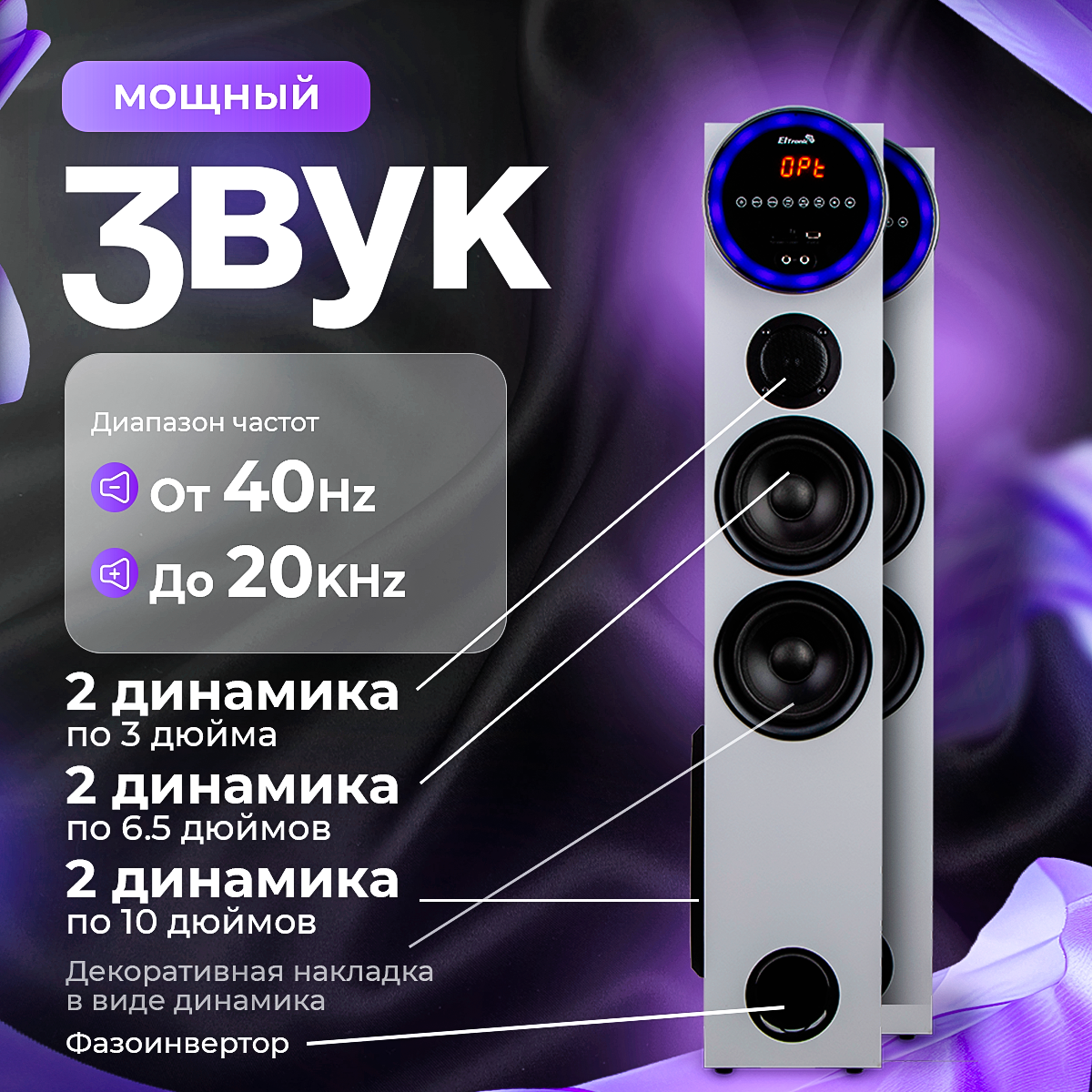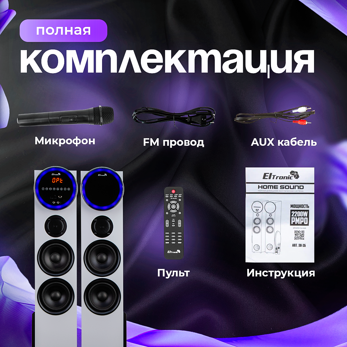 Акустические колонки ELTRONIC Home Sound 30-35 (серебро), 220 В, 6 полос, Bluetooth, FM, 30 Гц - 20 кГц интересное: