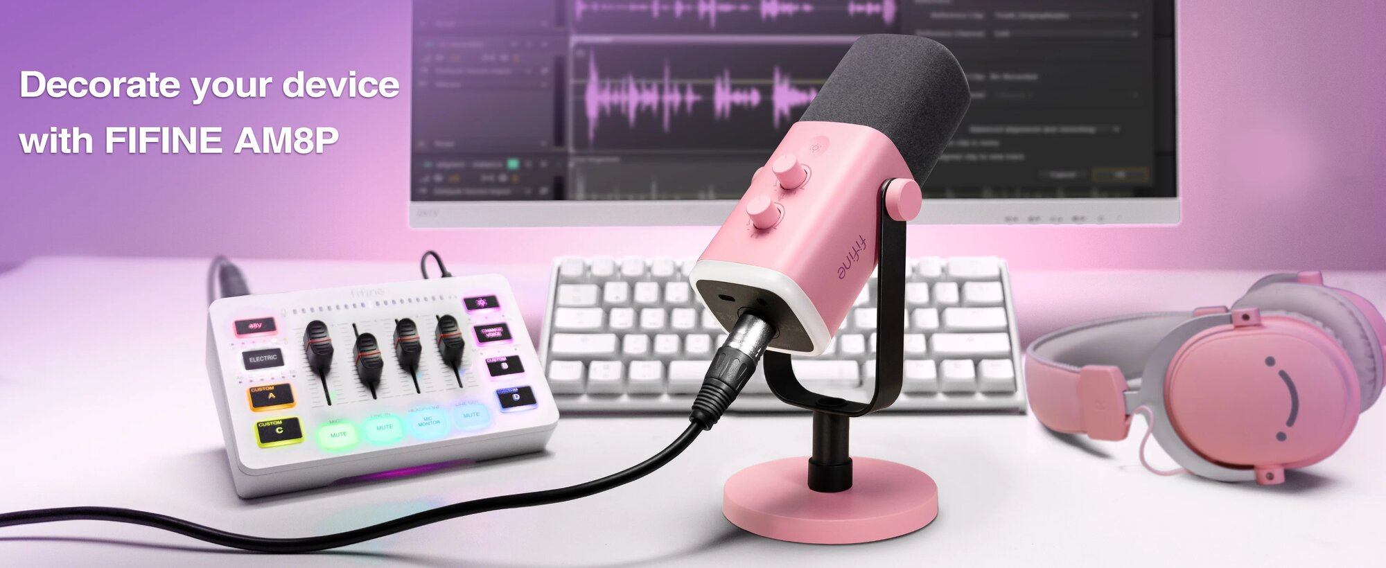 Ниже Вы можете прочитать отзывы на FIFINE AM8P USB/XLR игровой микрофон с RGB подсветкой, Розовый, ознакомится с подробными характеристиками, посмотреть интересные обзоры и фотографии на FIFINE AM8P USB/XLR игровой микрофон с RGB подсветкой, Розовый.