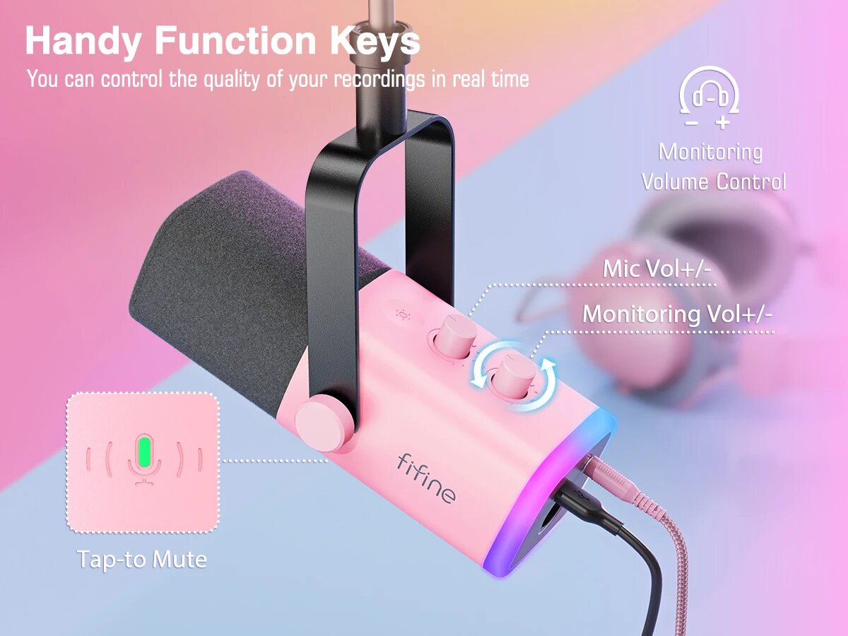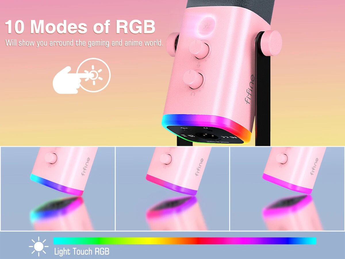 Купить FIFINE AM8P USB/XLR игровой микрофон с RGB подсветкой, Розовый