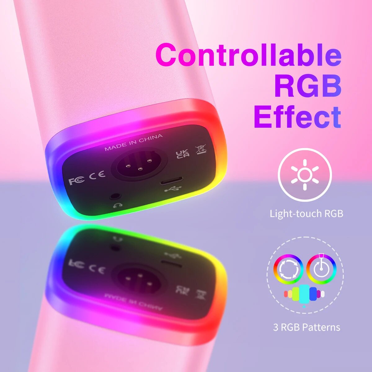 Проводной микрофон Fifine AM6, розовый, игровой, USB, RGB-подсветка