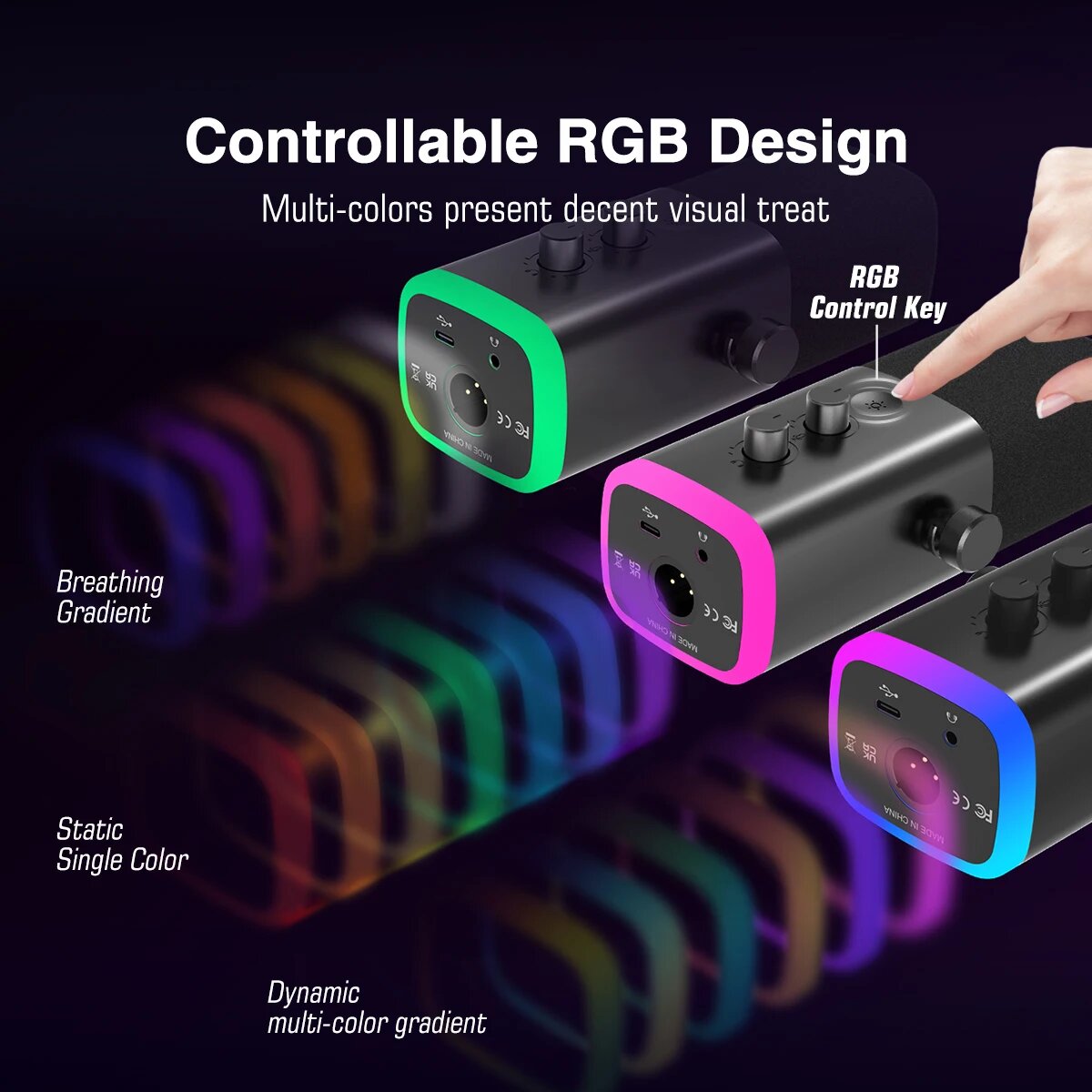 Динамический USB микрофон Fifine K651 с RGB подсветкой (в комплекте с шок-маунтом и микрофонной стойкой) черный