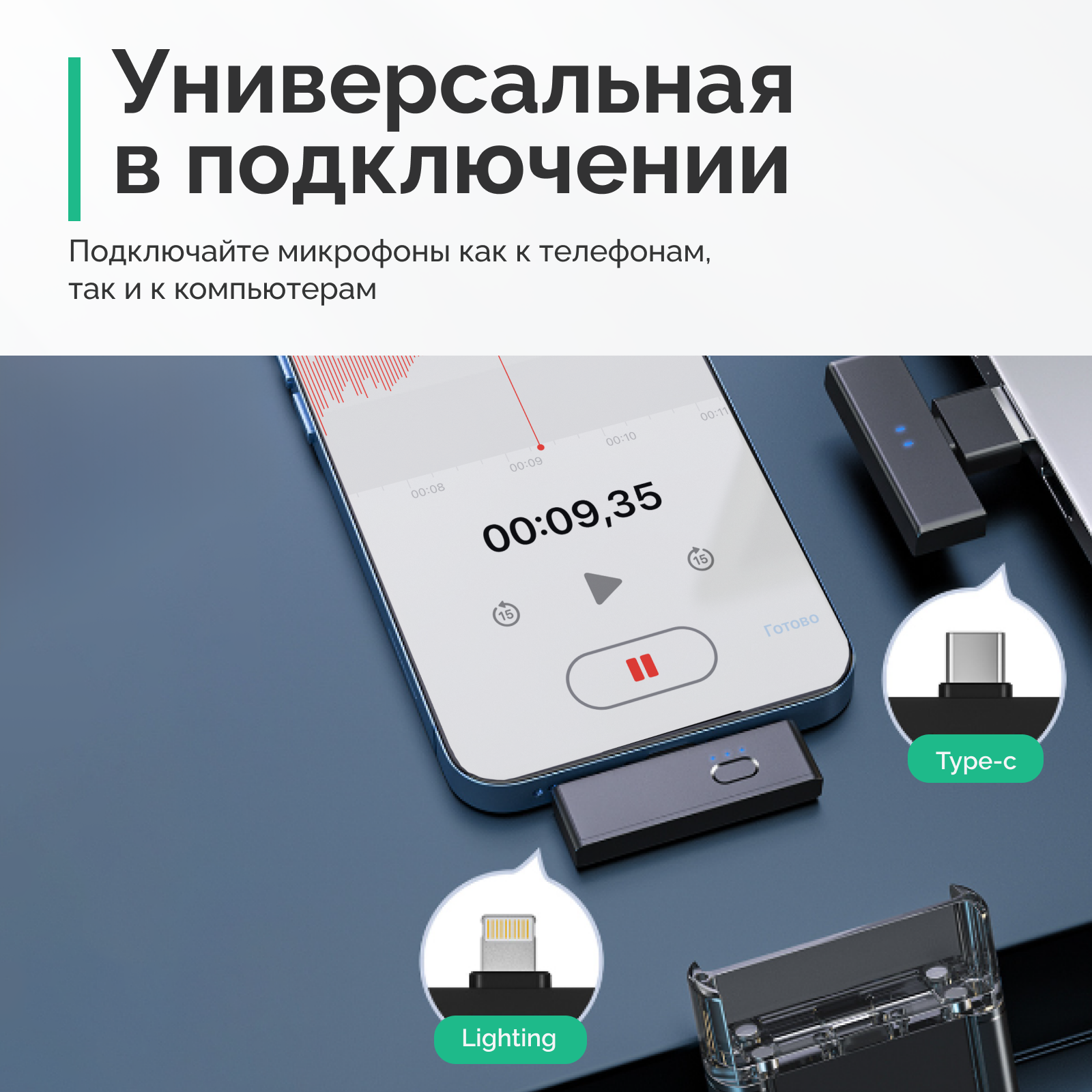 | Подробная комплектация | Микрофон - 2 шт. Приёмник Ligthning - 1 шт. Приёмник Type-C - 1 шт. Инструкция - 1 шт. |