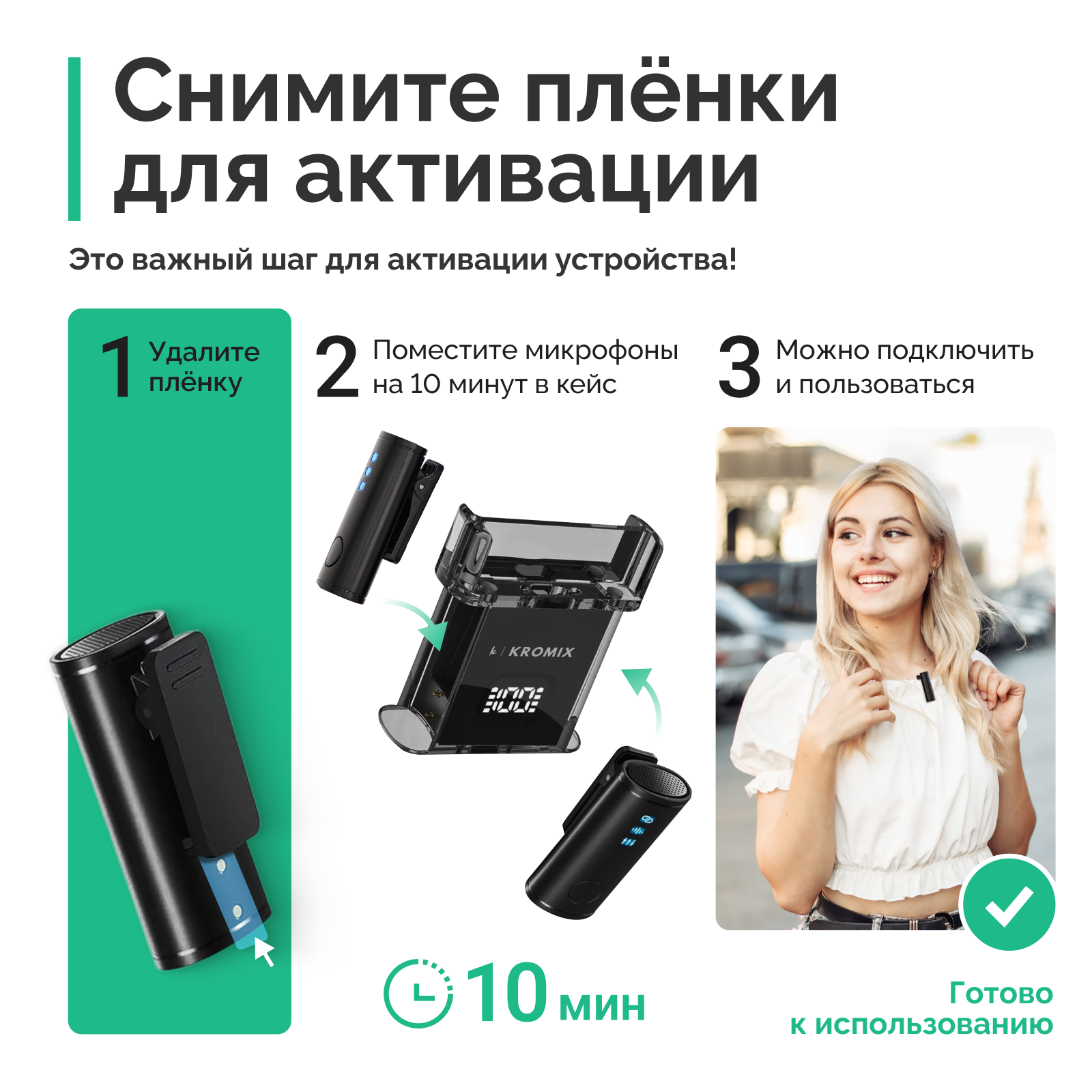 Микрофон петличка Kromix Smart, беспроводной, 2 шт., Type-C, Lightning, черный