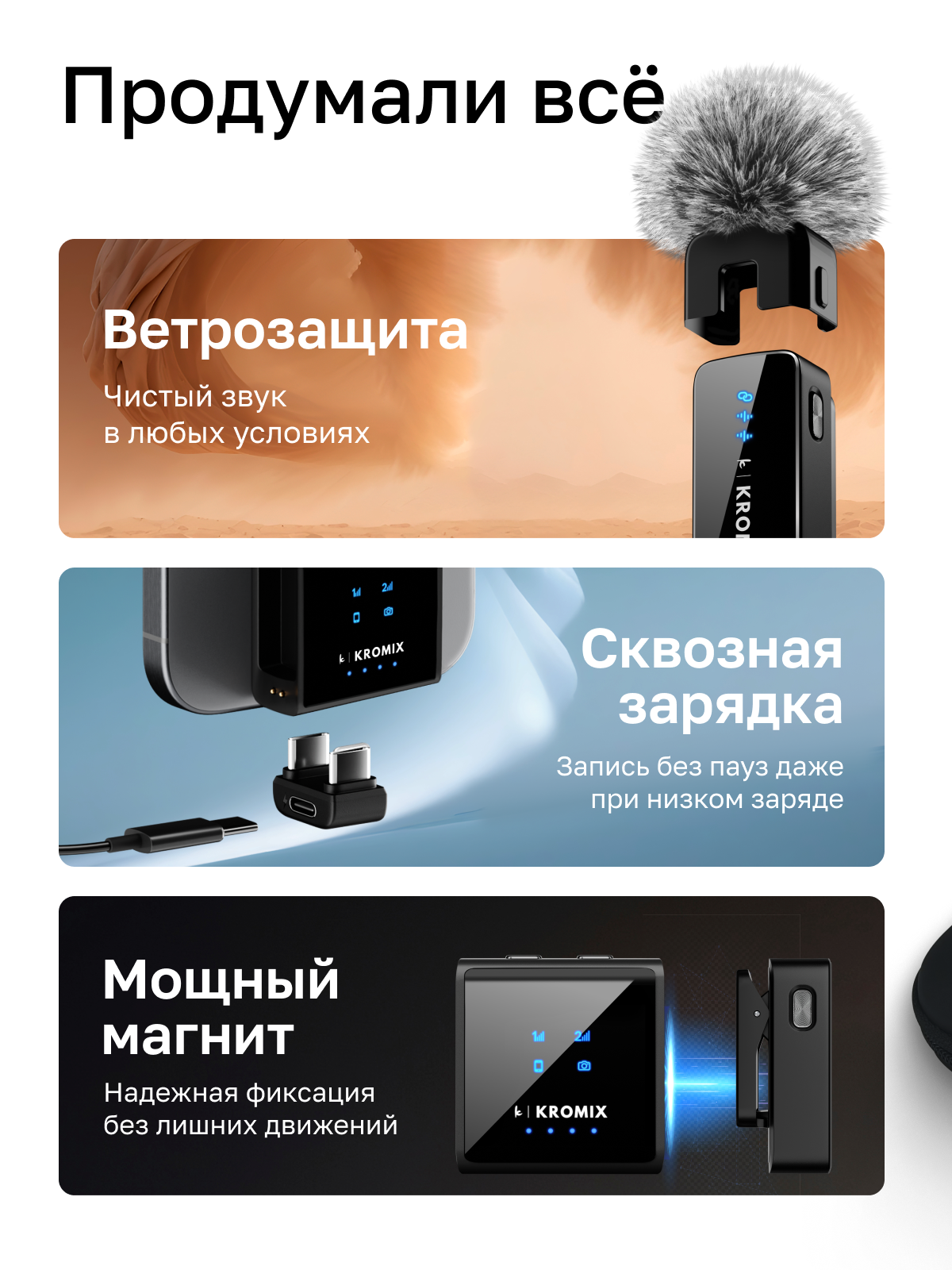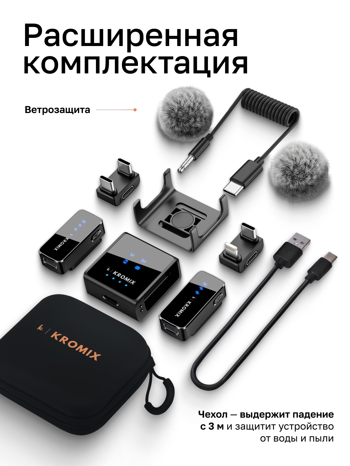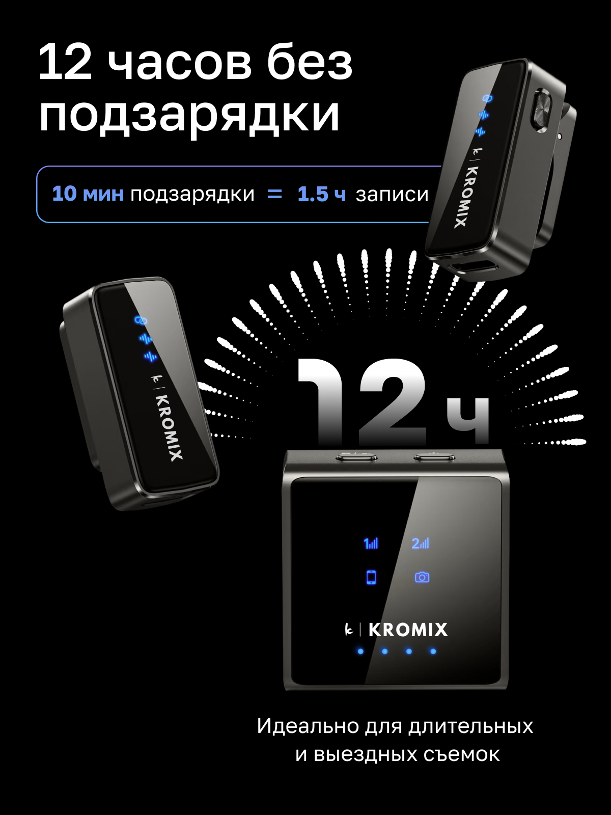 Петличный беспроводной микрофон 2шт Kromix Vlogio для iPhone, Android, камеры интересное: