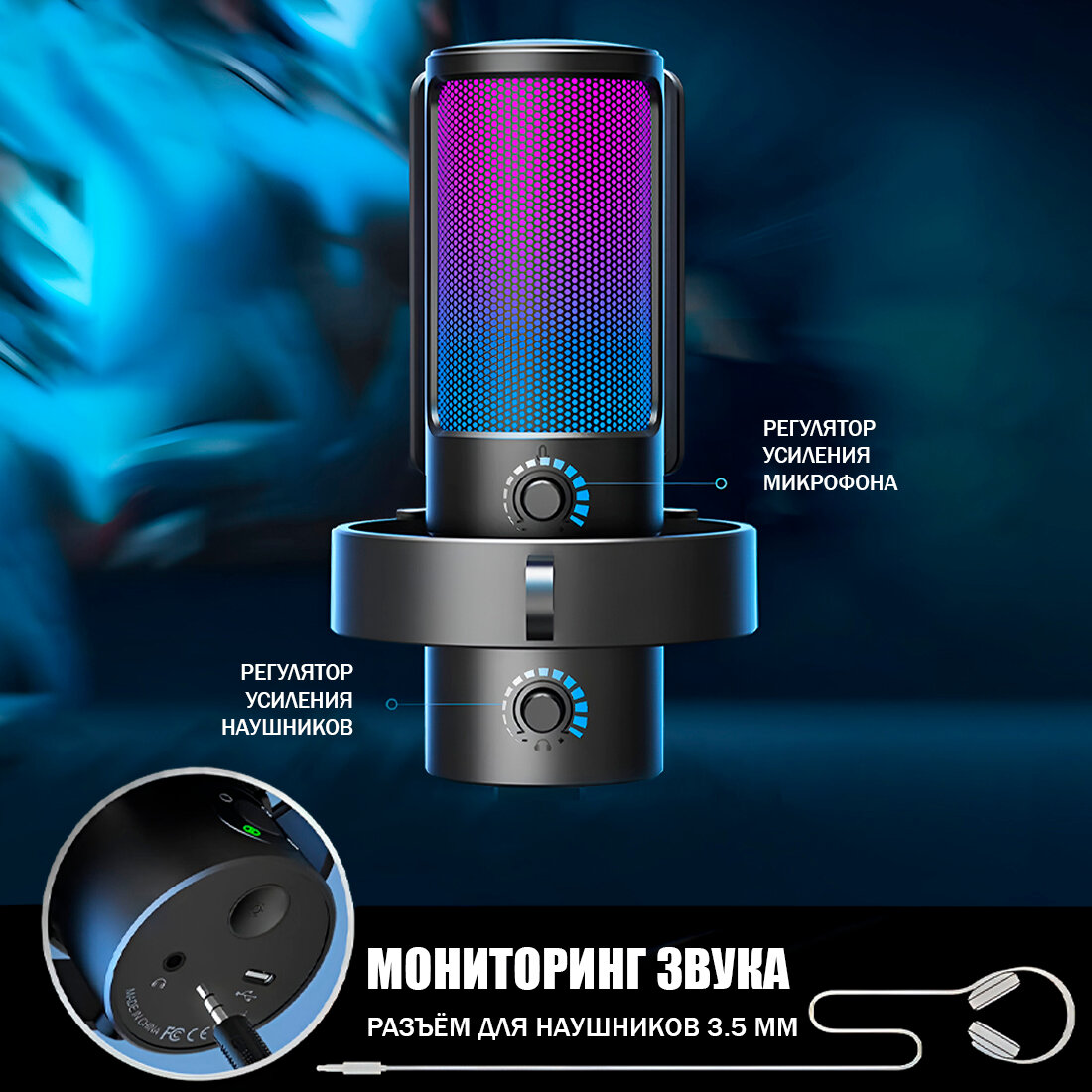 Проводной микрофон Fifine A8 Plus, конденсаторный, черный, RGB-подсветка интересное: