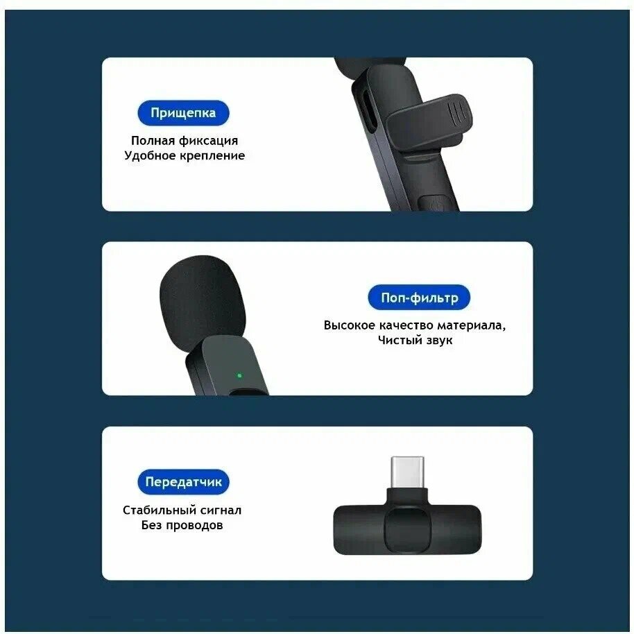 Беспроводной петличный микрофон K9 Lightning(2 в1) для iPhone/iPad, Черный интересное:
