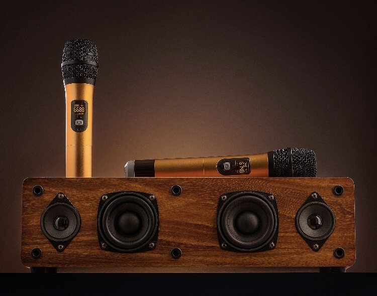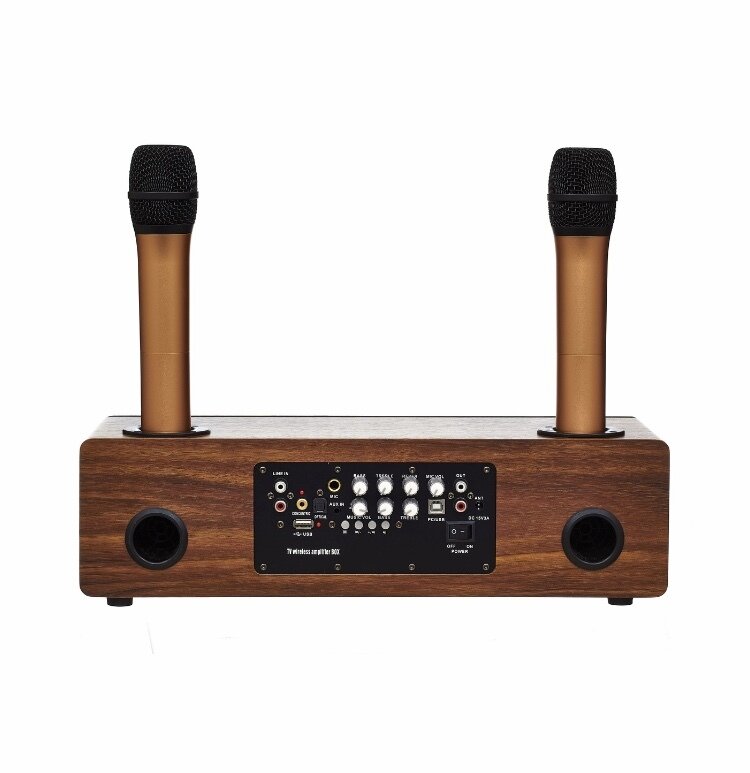 Купить Караоке-система деревянная для дома с беспроводными микрофонами Karaoke Box 120Вт