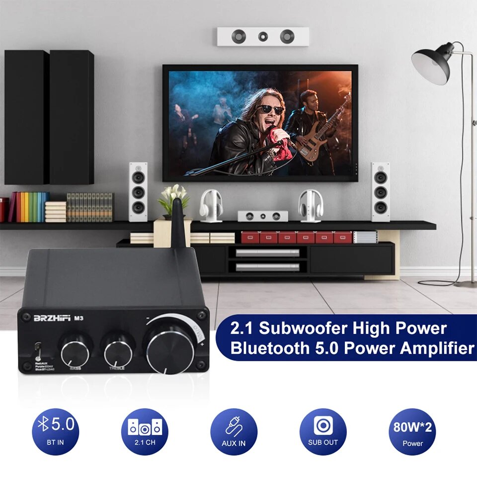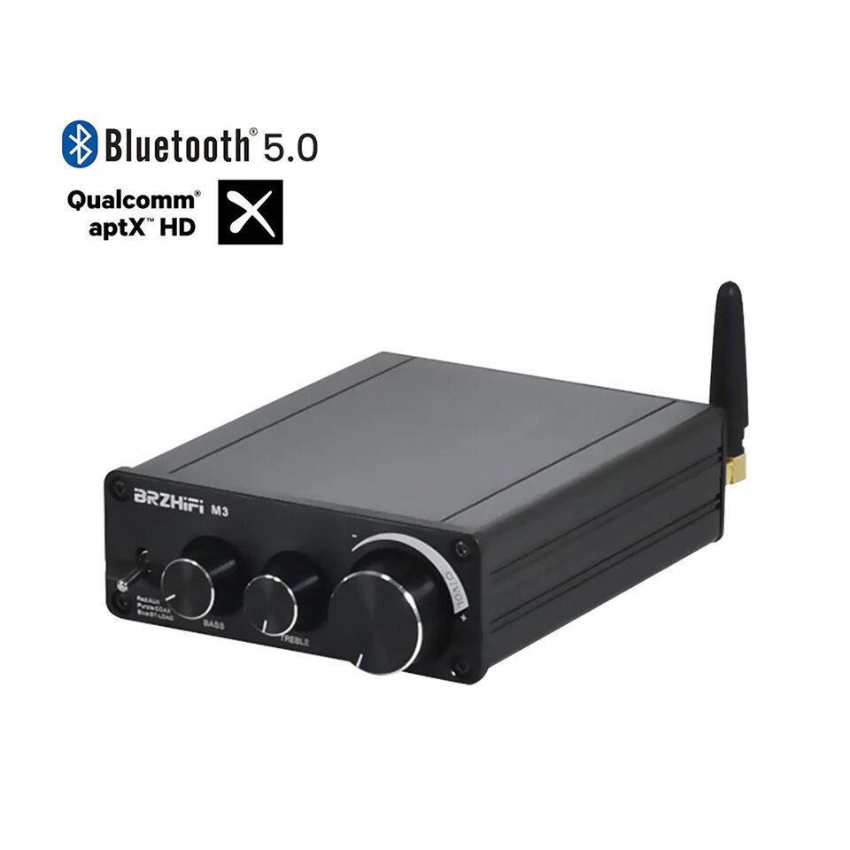 Усилитель BRZHIFI Bluetooth 5,0 QCC5125 MA12070 2*80 Вт 2.1 Power HD Audio AUX APTX APTX-HD HiFi Mini Amp DIY стерео домашний кинотеатр, Черный