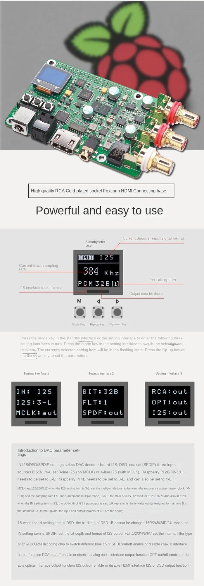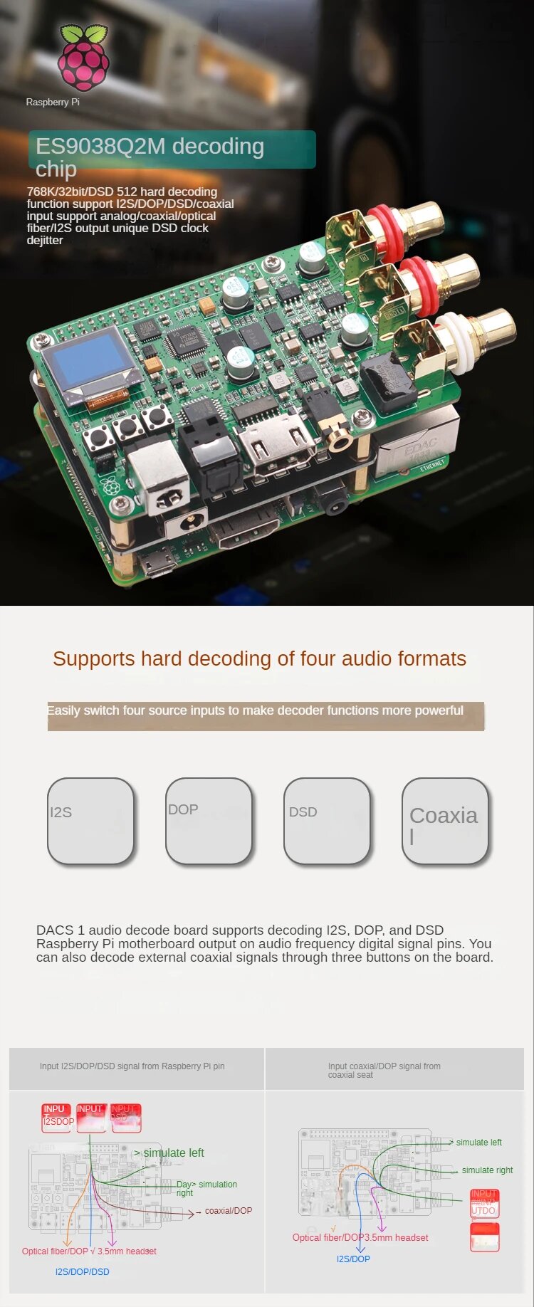Nvarcher Raspberry Pi ES9038Q2m DAC аудио декодер, DAC Board интересное:
