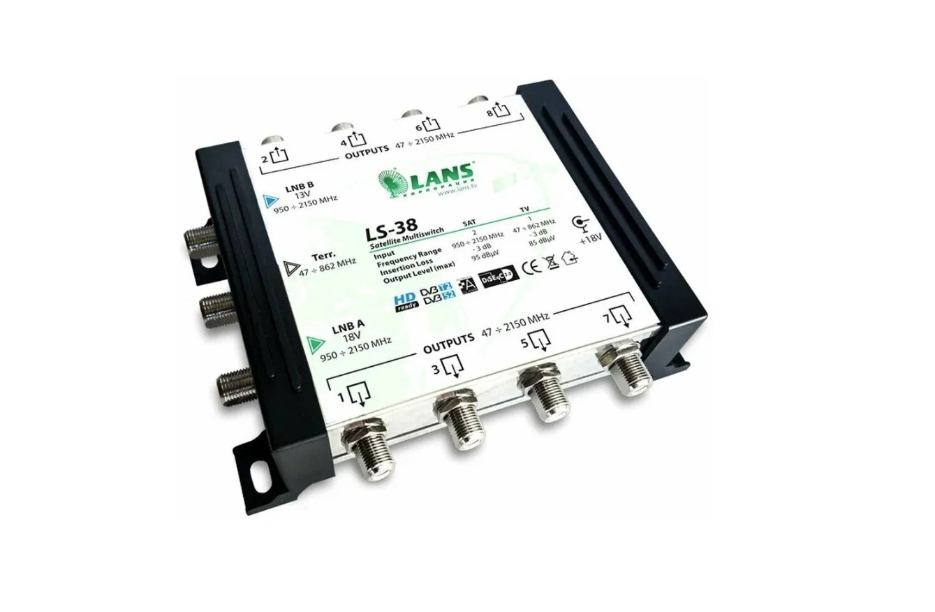 Мультисвитч активный Lans LS38 Оконечный (3*8,13/18v, входы: 1 TV + 2 SAT,8 выходов) интересное: