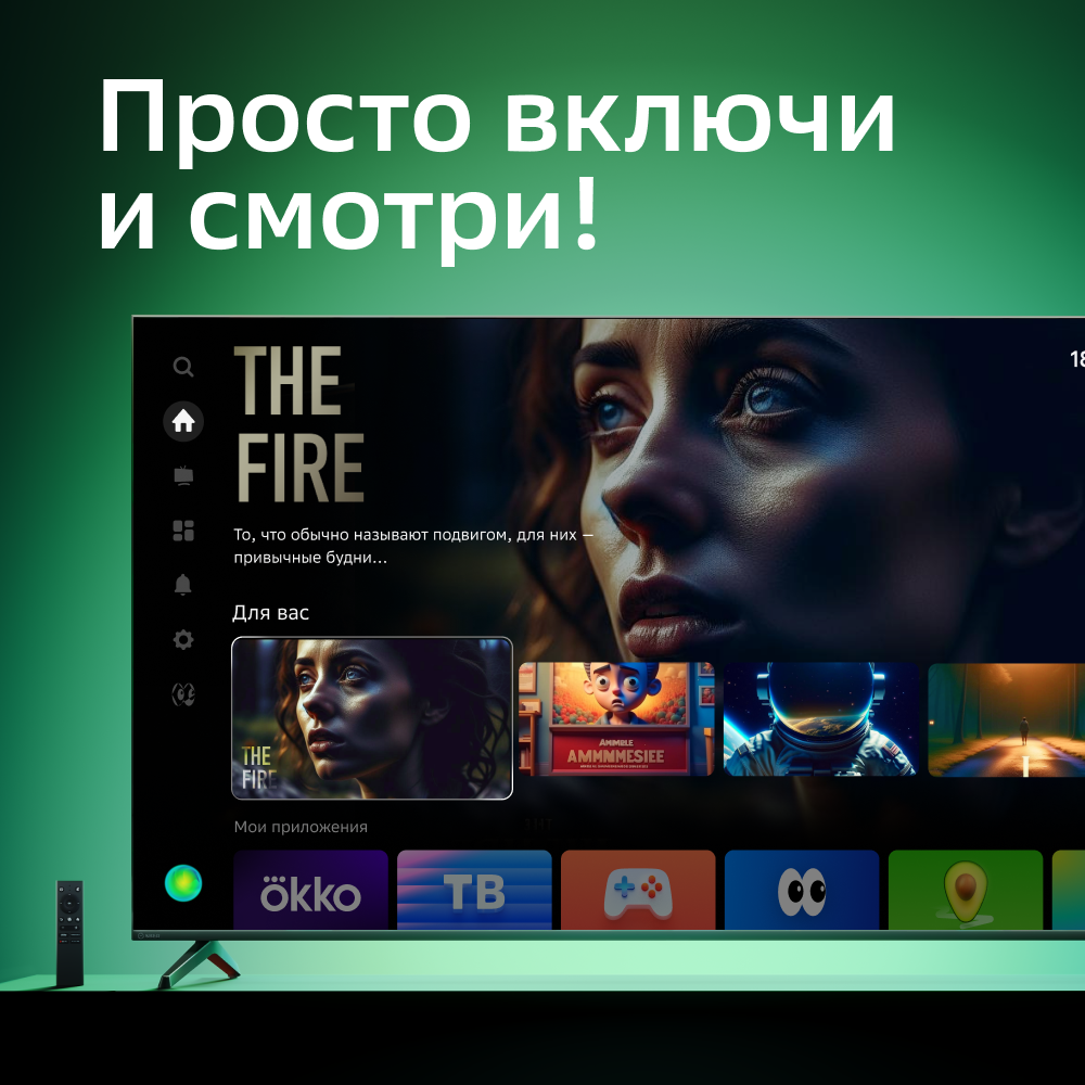 | Дополнительная информация | 100+ бесплатных телеканалов; Возможность установки сторонних приложений; Трансляция изображения на ТВ |