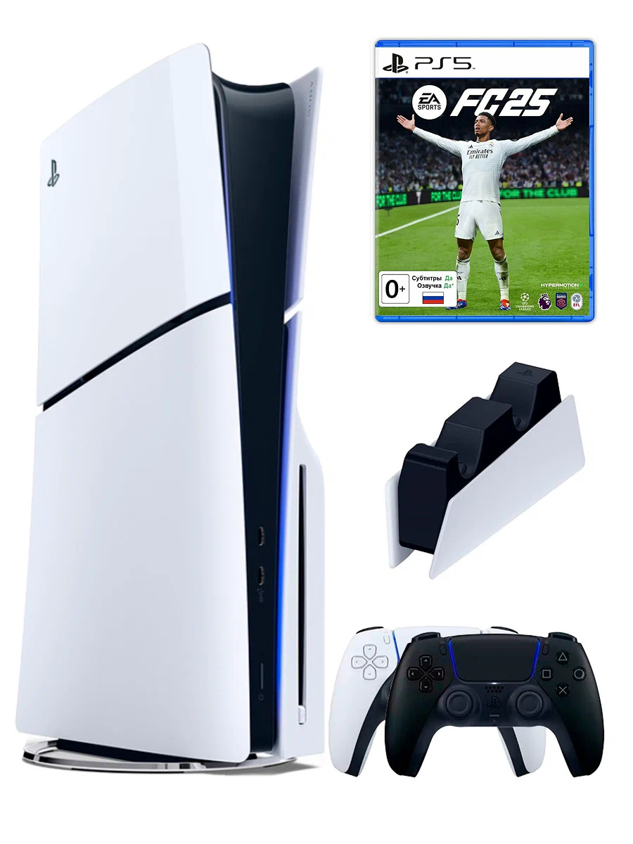 Купить PS5 (ПС5) Игровая приставка Sony PlayStation 5 Slim disc + 2-й геймпад + зарядное + игра FIFA 25