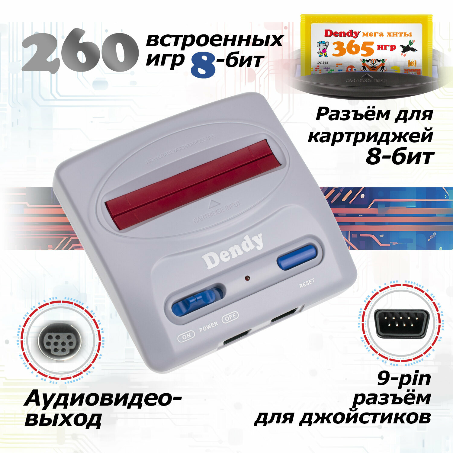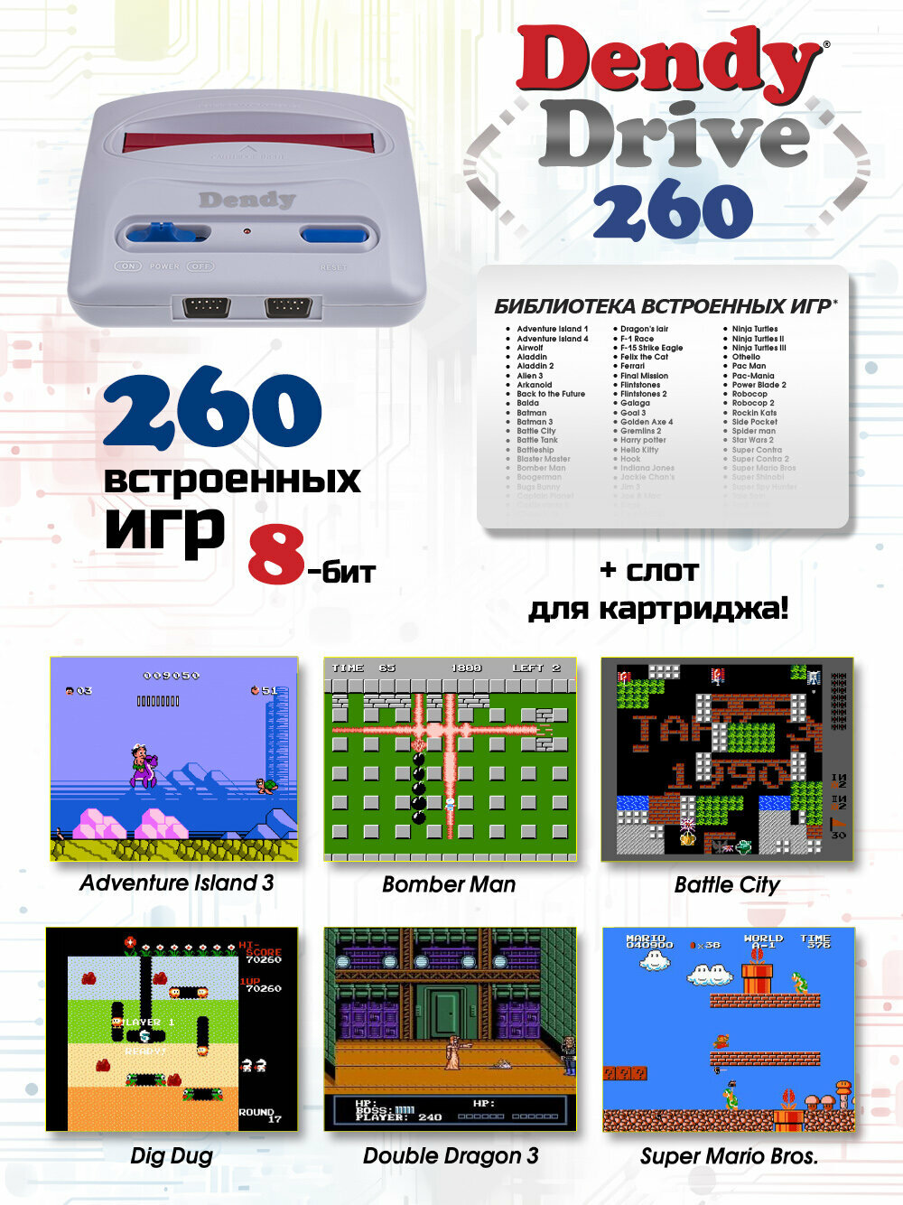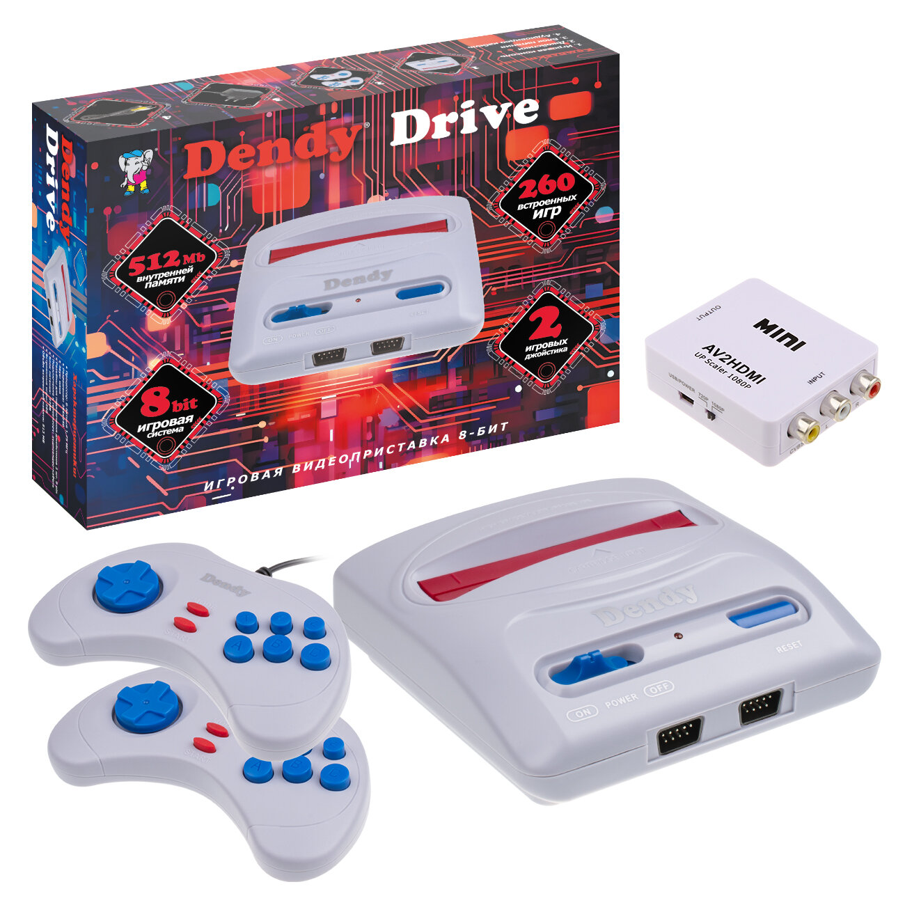 Игровая приставка Dendy Drive 260 встроенных игр (8-бит) / Ретро консоль Денди с двумя джойстиками/ Для телевизора