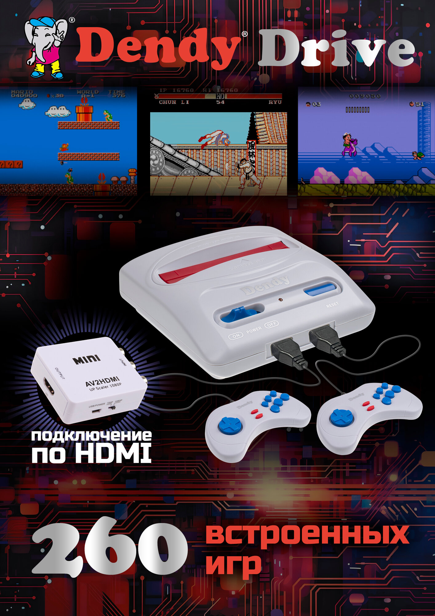Игровая приставка Dendy Drive 260 встроенных игр с HDMI конвертером (8-бит) / Ретро консоль Денди с двумя джойстиками интересное: