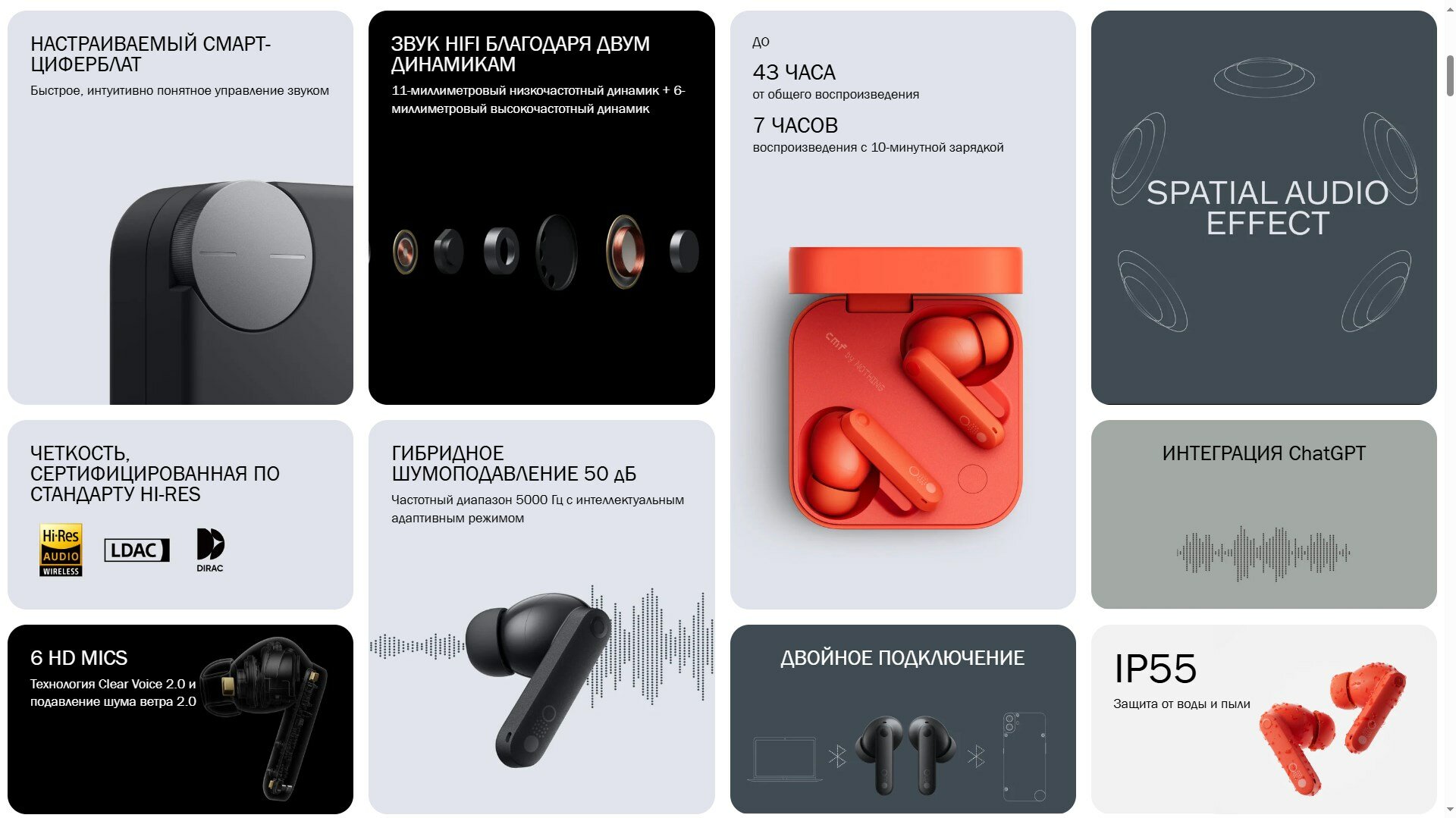| Дополнительная информация | ЗВУК HIFI ОТ ДВУХ ДИНАМИКОВ 11-мм басовый динамик + 6-мм твитер |
