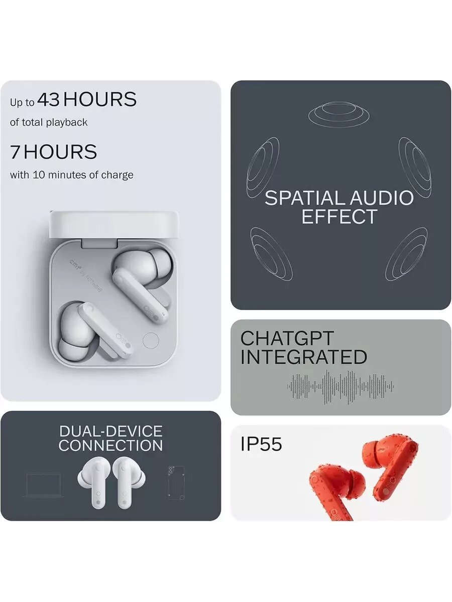 Беспроводные наушники CMF Buds Pro 2 Global, USB Type-C, Light Grey
