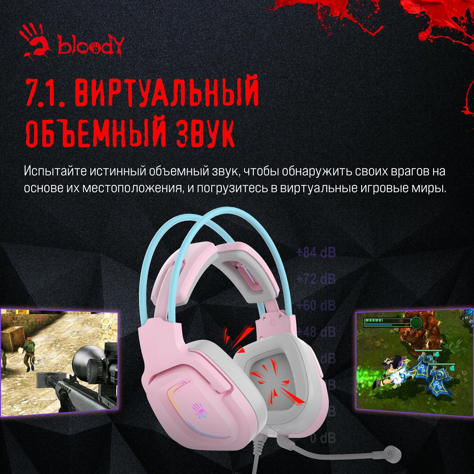 СохранитьГарнитура игровая A4TECH Bloody G575, для компьютера, мониторные, проводные, розовый / голубой [g575 /sky pink/ usb] интересное: