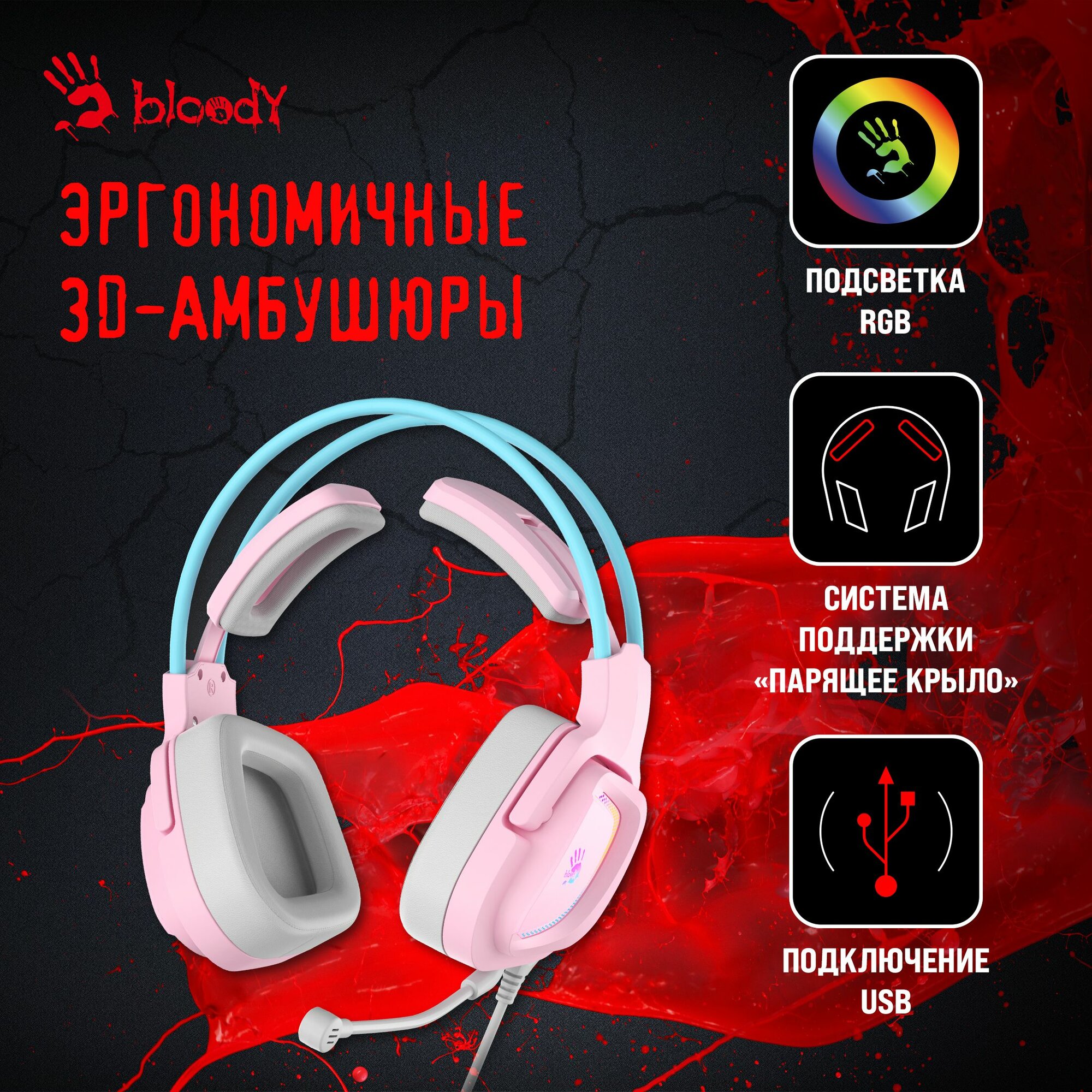 Купить Гарнитура игровая A4TECH Bloody G575, для компьютера, мониторные, проводные, розовый / голубой [g575 /sky pink/ usb]