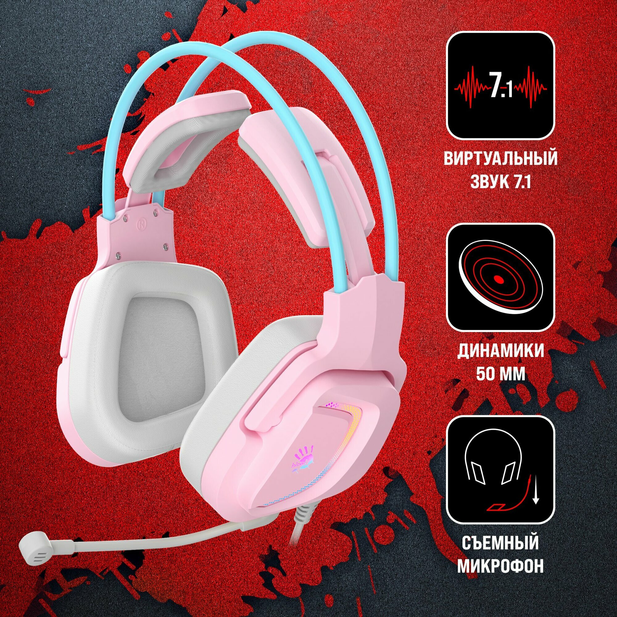 Гарнитура игровая A4Tech Bloody G575, розовый/голубой (g575 /sky pink/ usb)