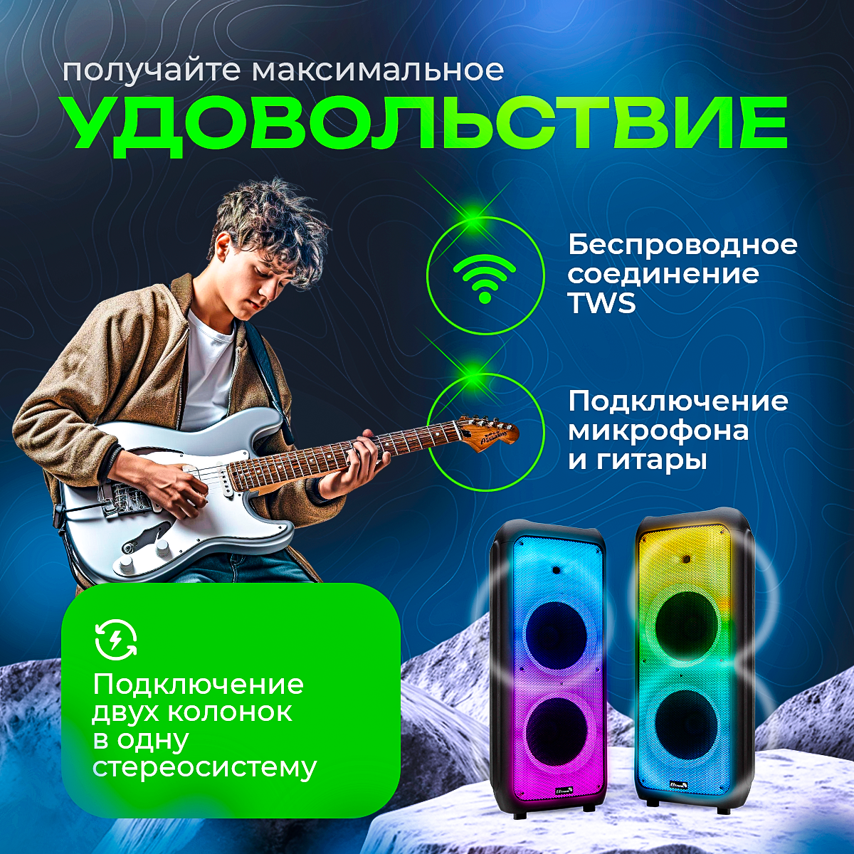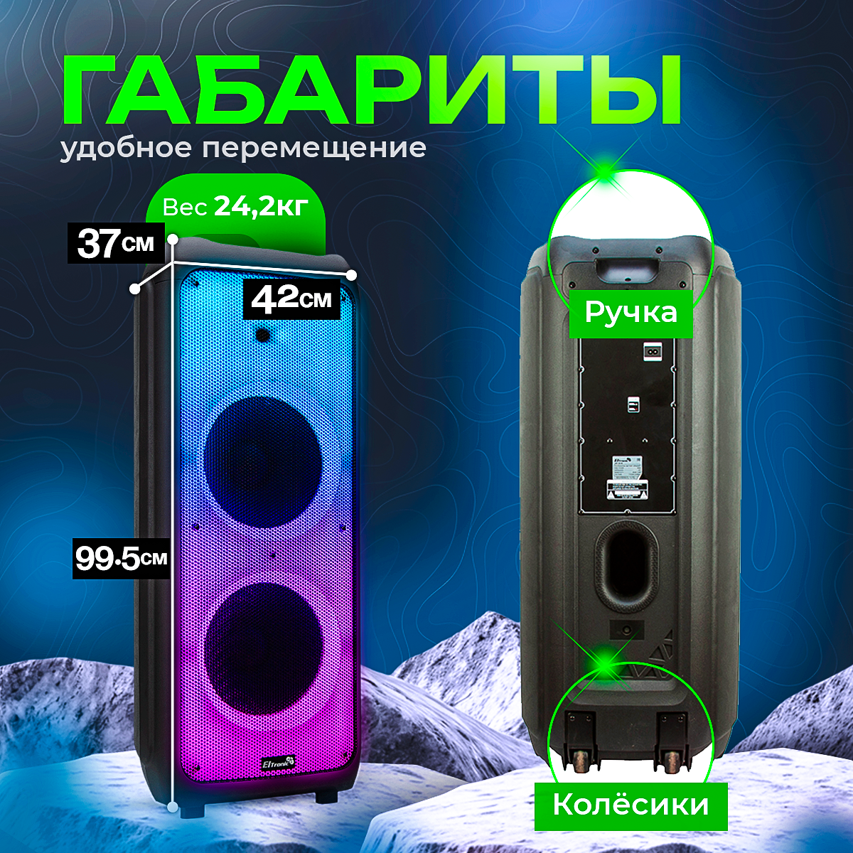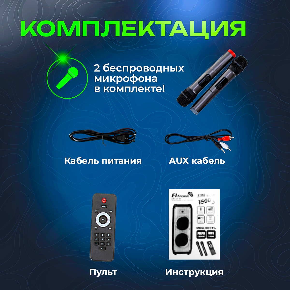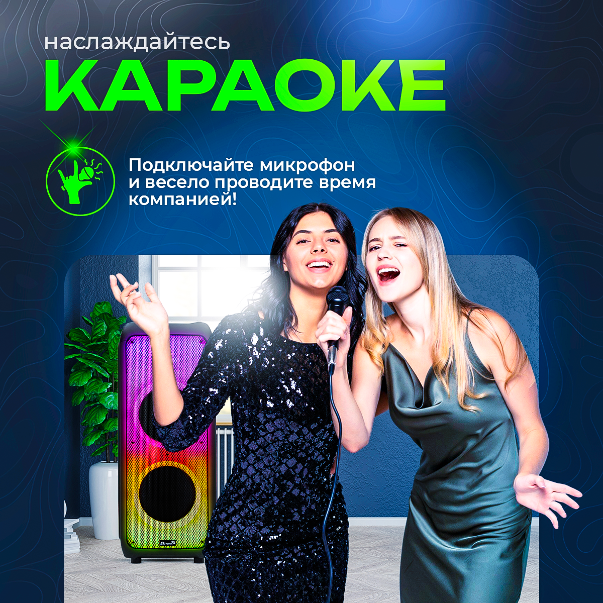 | Дополнительная информация | комплектация: колонка, 2 Беспроводных микрофона, пульт ДУ, инструкция |