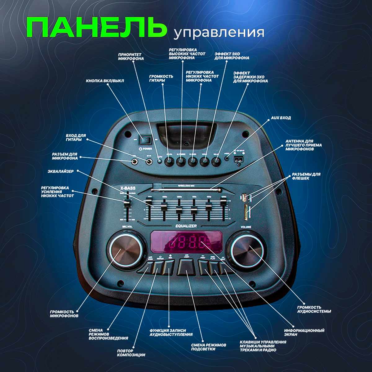 | Функции звука | регулировка ВЧ / регулировка НЧ / синхронизация колонок / эквалайзер |