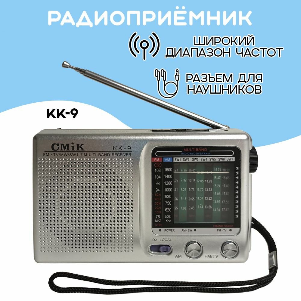 Купить Радиоприёмник Cmik KK-9, переносной, FM/AM/СВ, цвет - серебристый