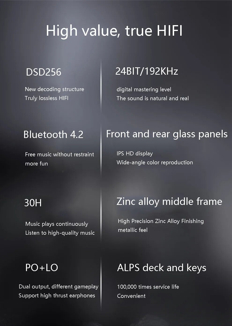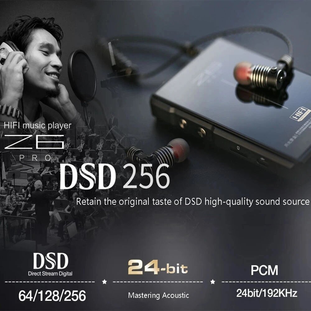 Портативный Hi-Fi музыкальный плеер Z6Pro, MP3 двухъядерный плеер, беспроводной Bluetooth DSD256 HD декодирование без потерь, двойной выход PO + LO