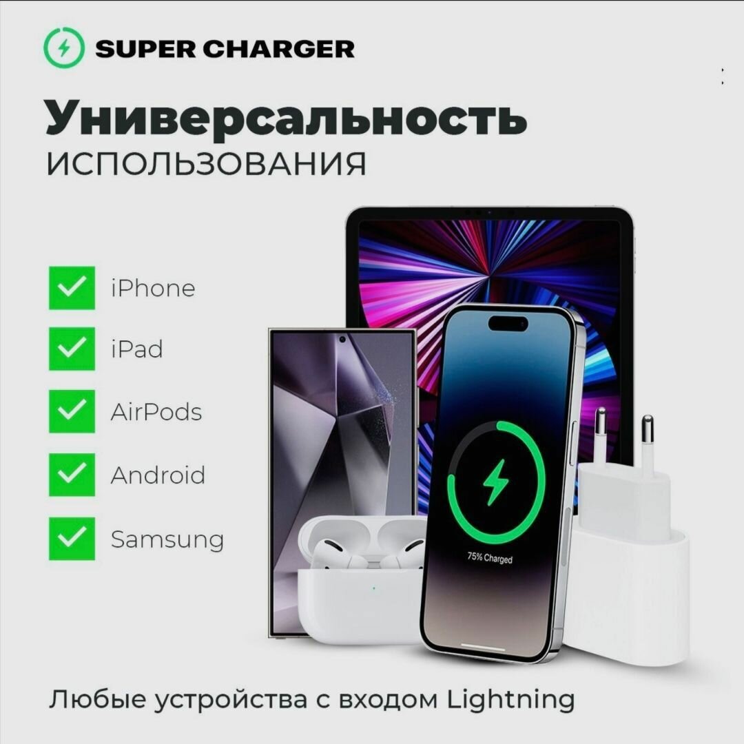 Блок питания, с кабелем Type-C и Lightning, для iPhone, 25Вт интересное: