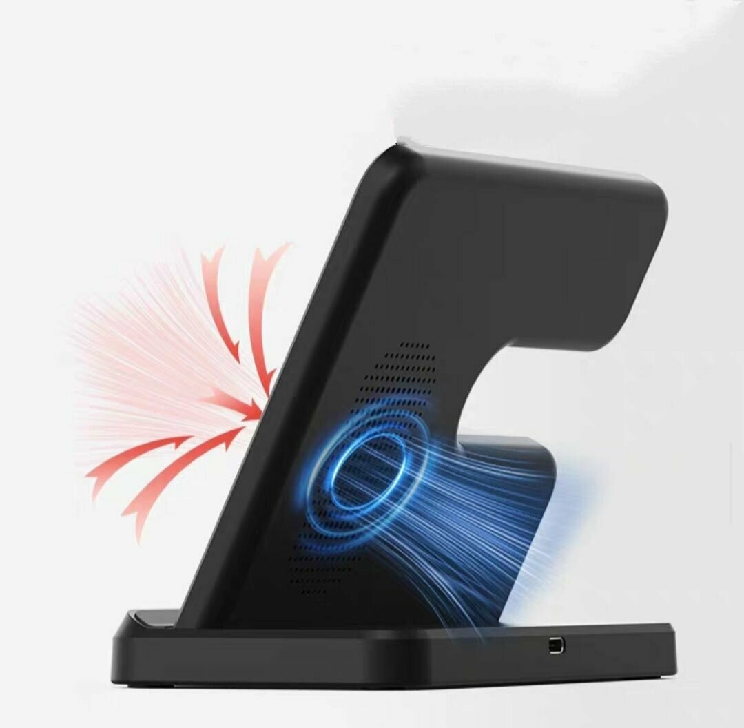Беспроводное зарядное устройство 3 в 1, с адаптером, черное