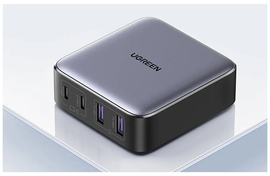 СохранитьСетевое зарядное устройство Ugreen CD327, 2хUSB-A + 2х USB-C, 65W, GaN цвет серый интересное: