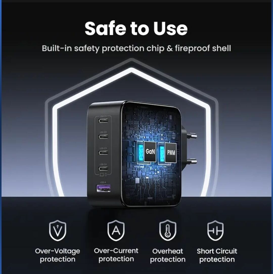 Сетевое зарядное устройство Ugreen USB A + 3 USB C 100W GaN (40747)
