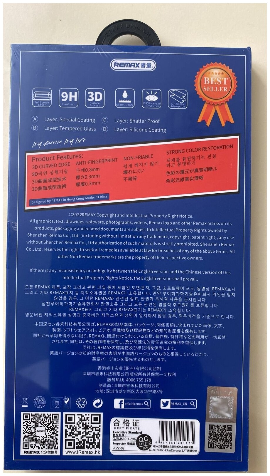 СохранитьЗащитное стекло Apple iPhone 13 Pro Max 6.7 Remax Medicine GL-27 черное интересное: